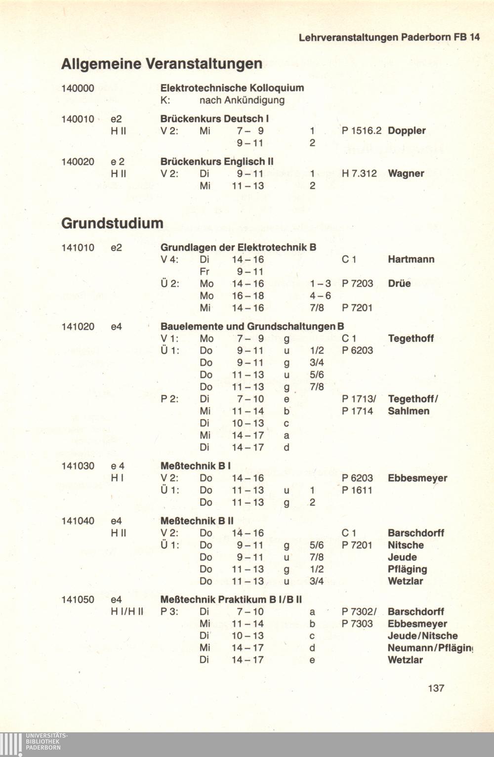 Personal- und Vorlesungsverzeichnis für die Universität Paderborn
