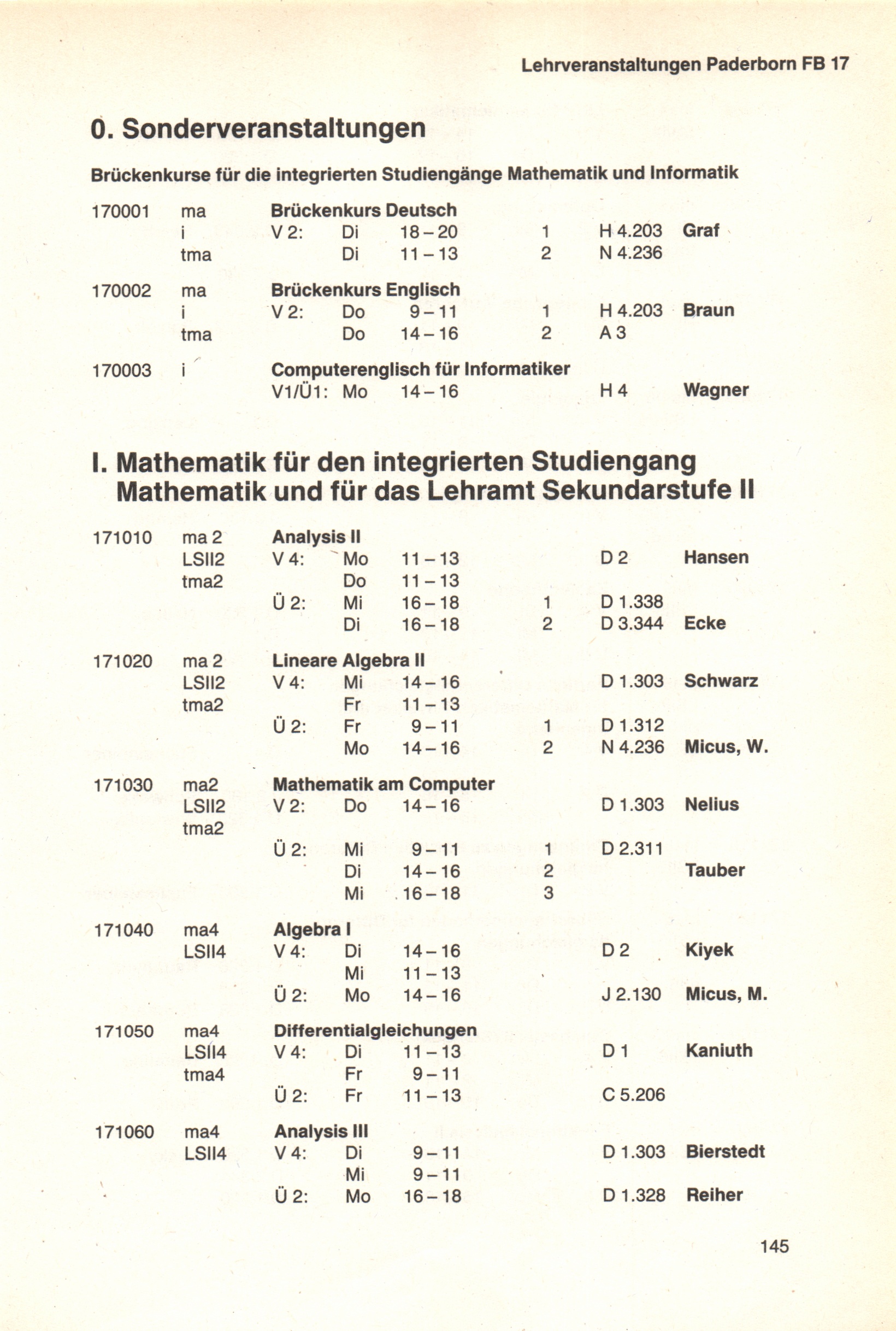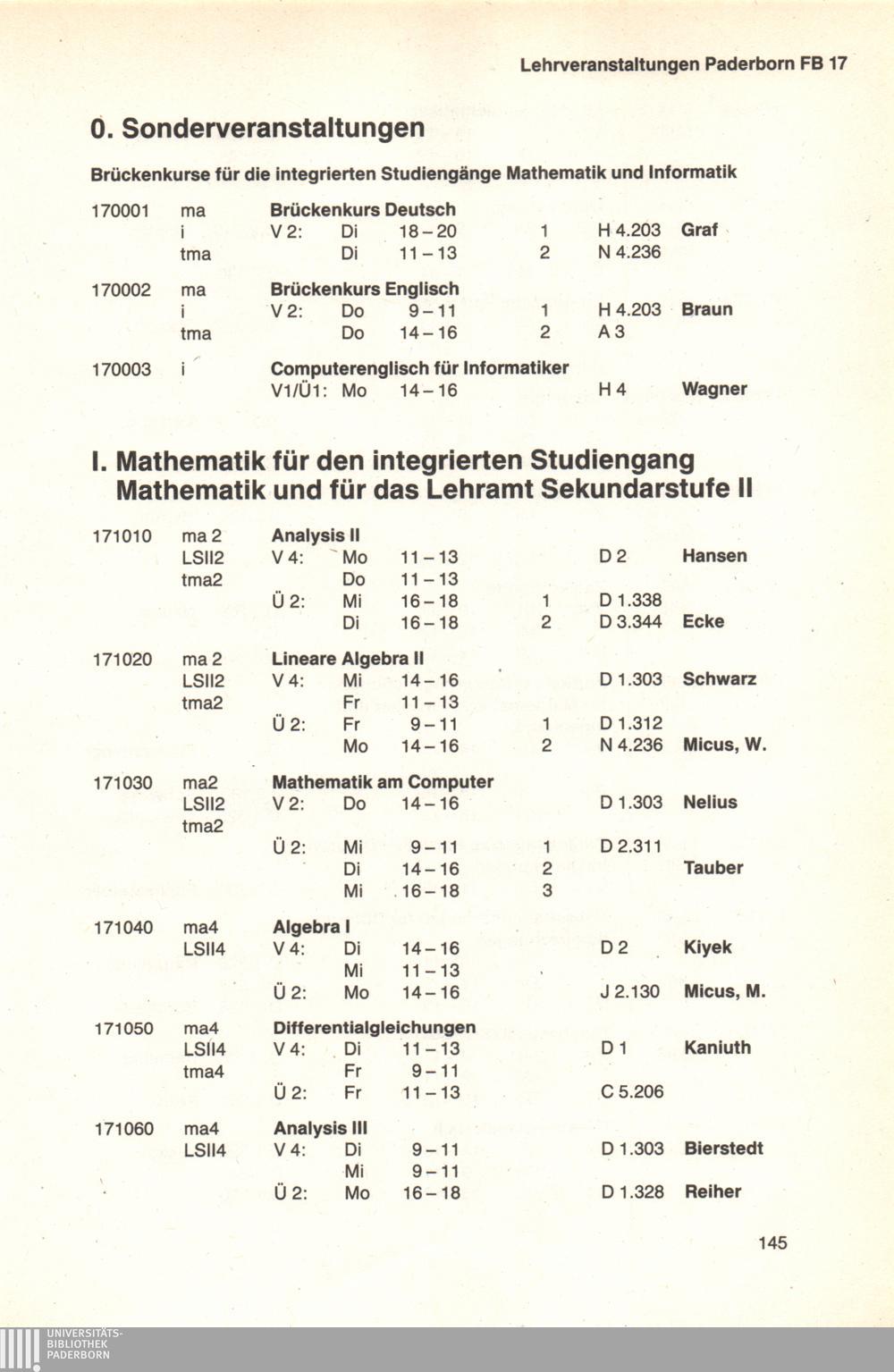 Personal- und Vorlesungsverzeichnis für die Universität Paderborn