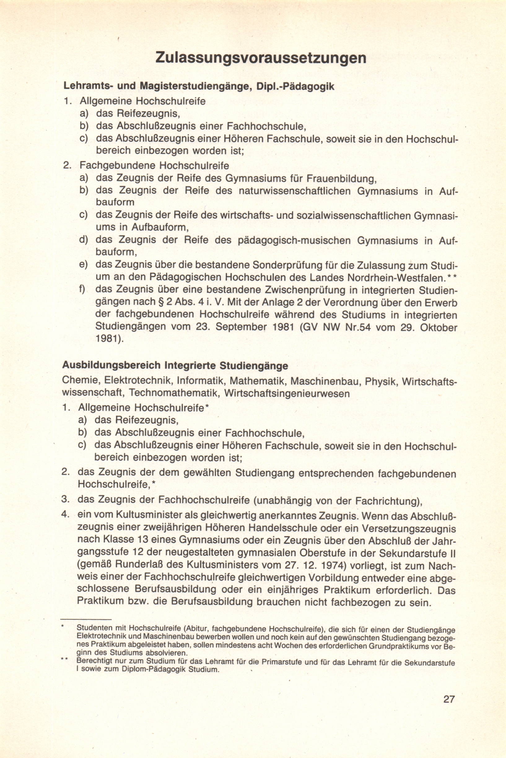 Zulassungsvoraussetzungen