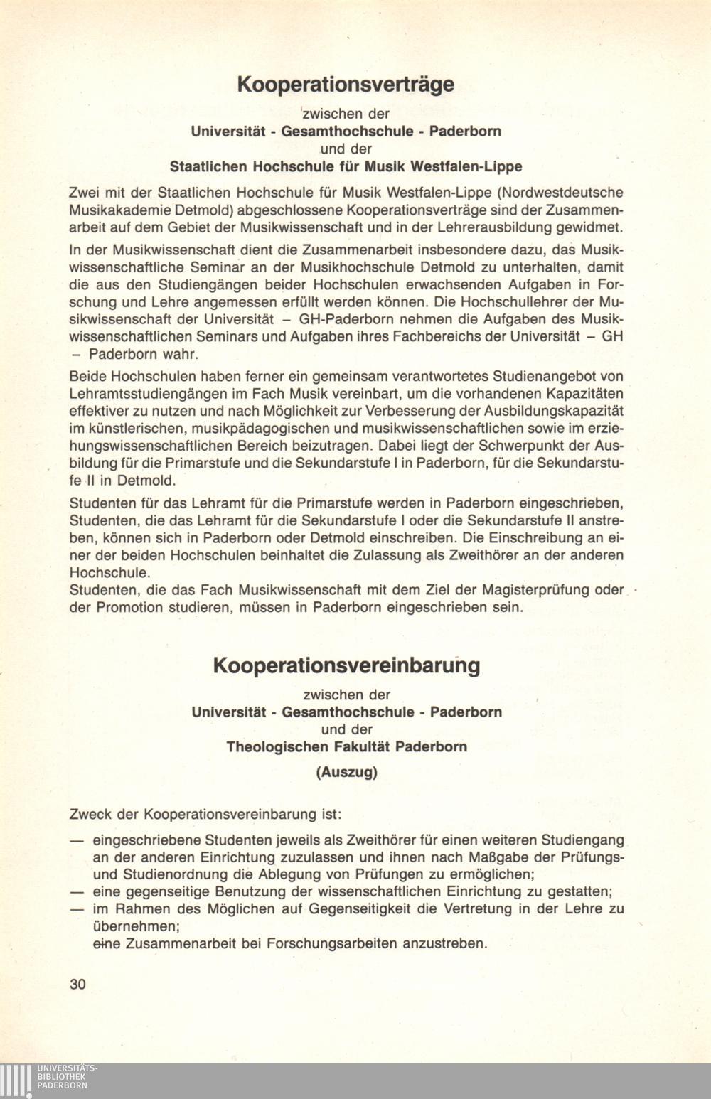 Kooperationsvereinbarung zwischen der Universität-Gesamthochschule Paderborn und[...]