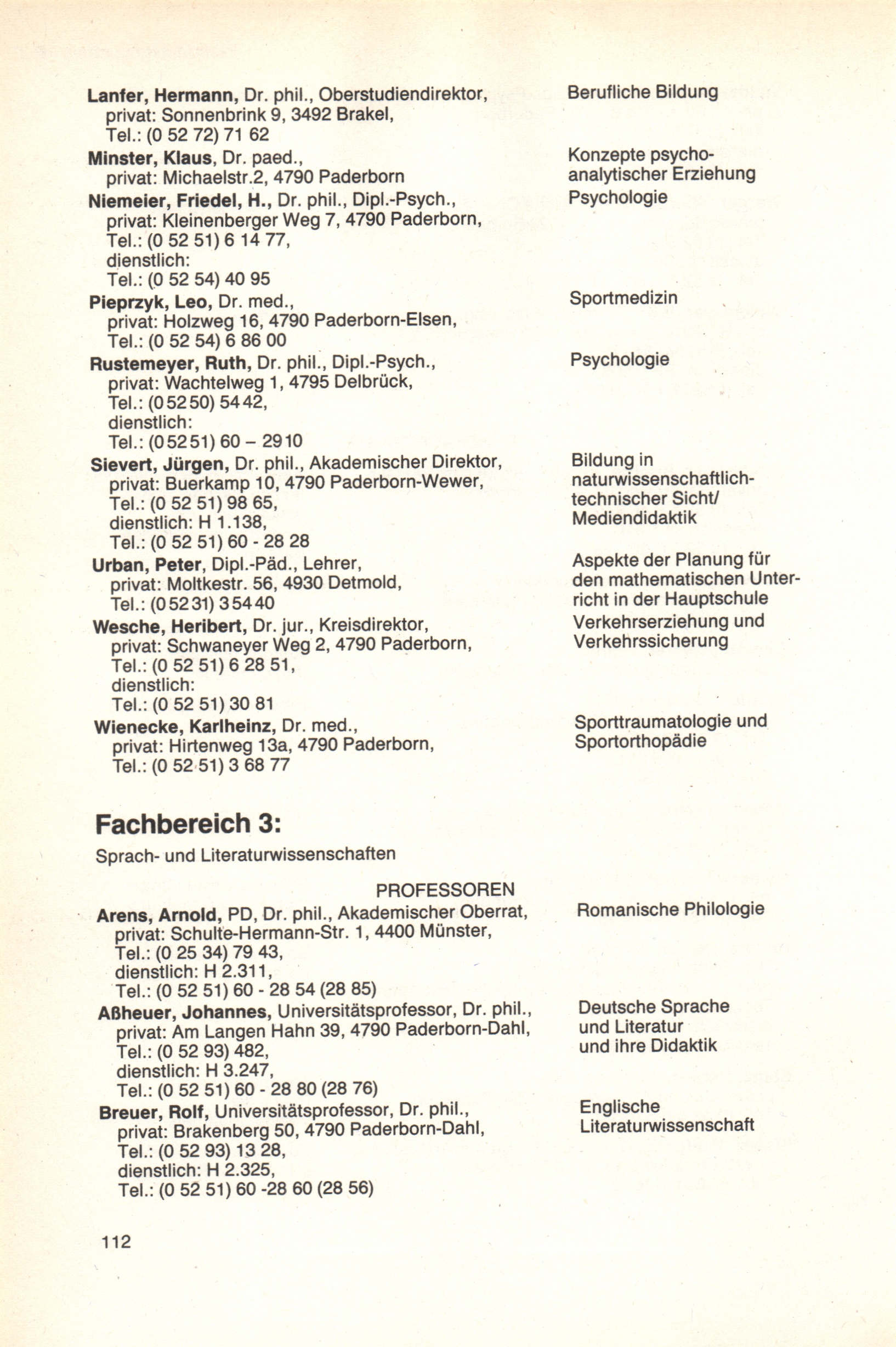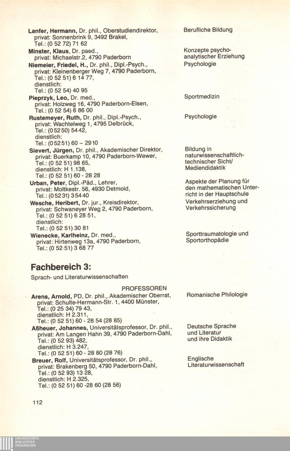 Personal- und Vorlesungsverzeichnis für die Universität Paderborn