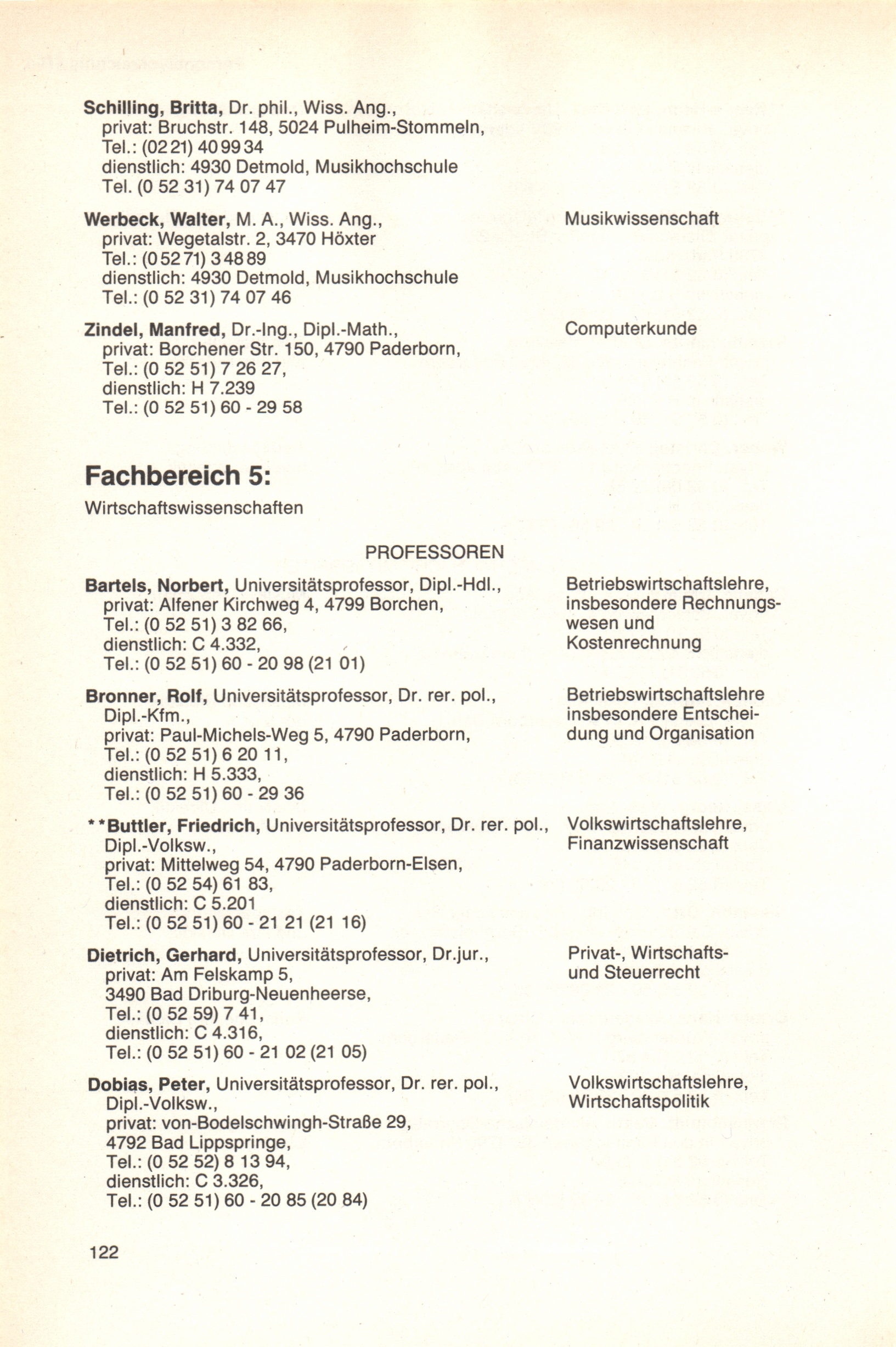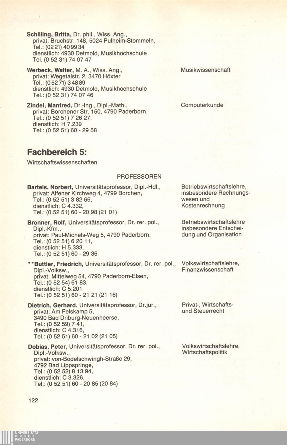 Personal- und Vorlesungsverzeichnis für die Universität Paderborn