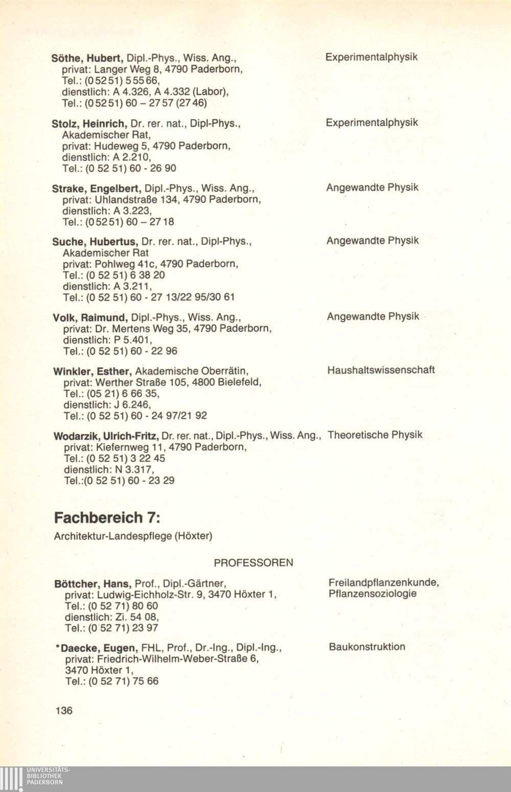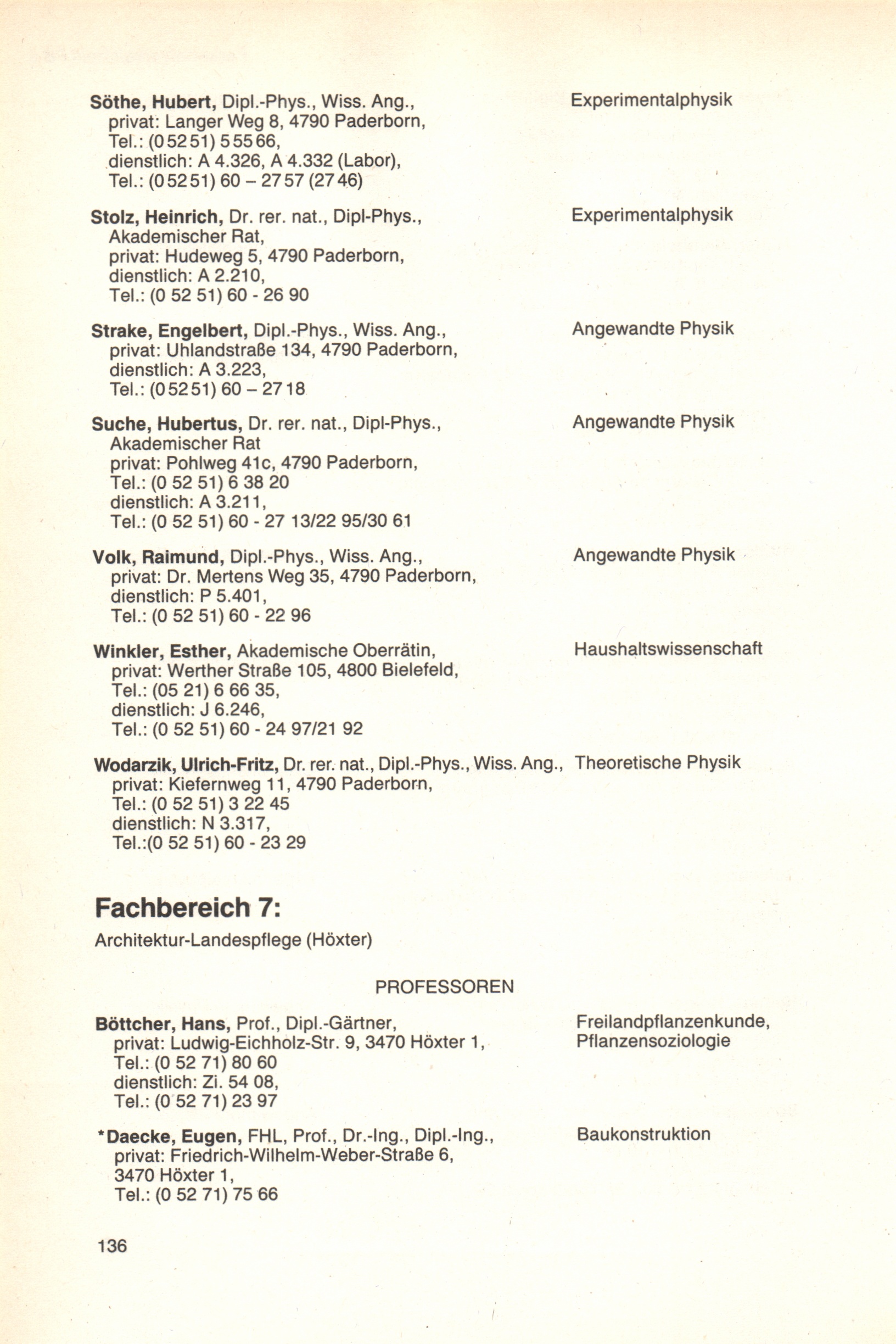 Personal- und Vorlesungsverzeichnis für die Universität Paderborn