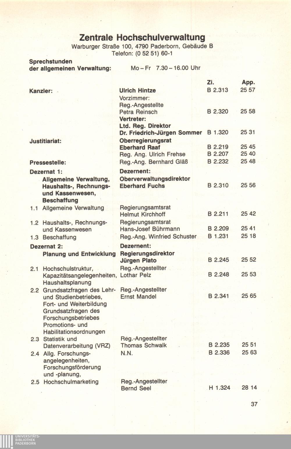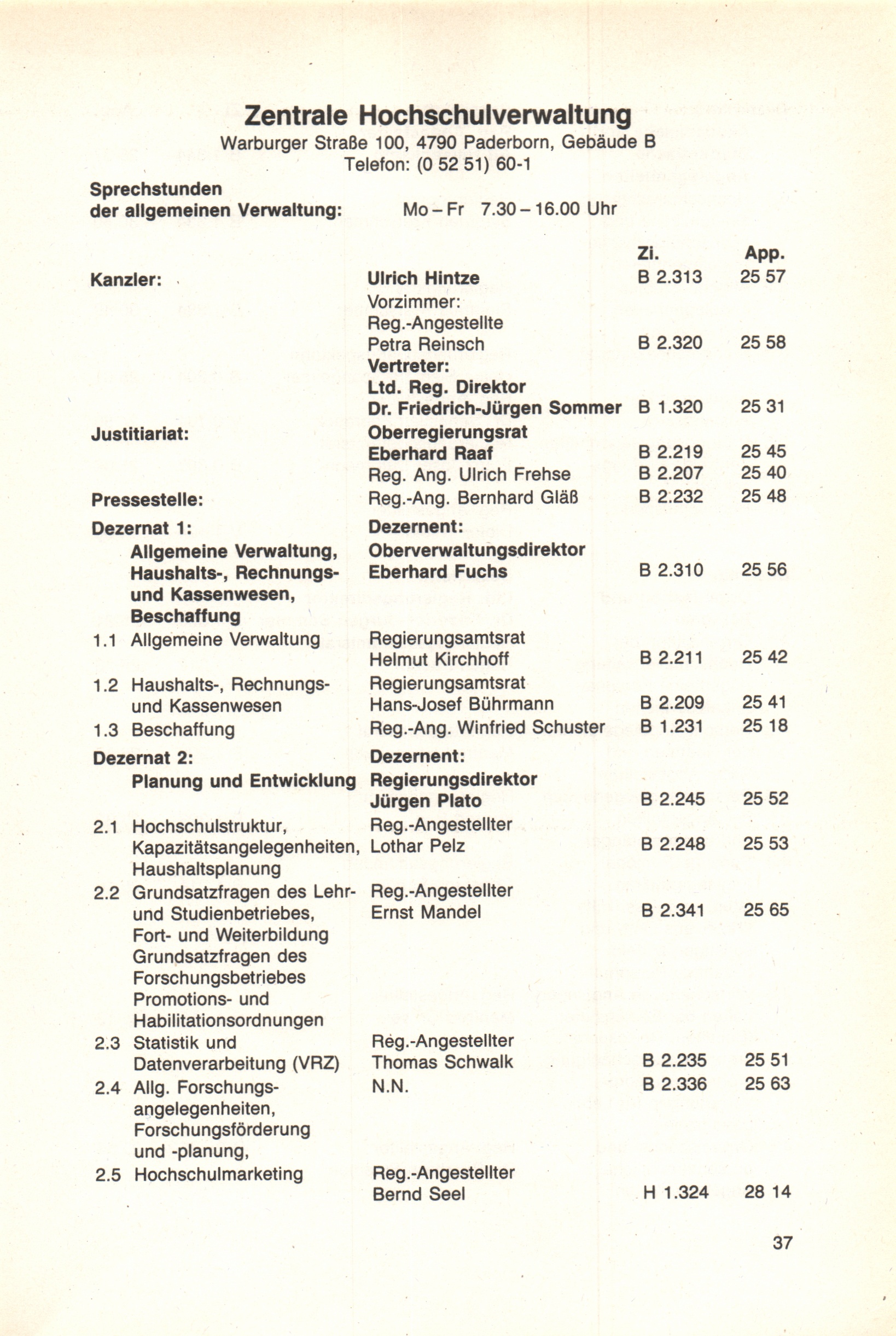 Personal- und Vorlesungsverzeichnis für die Universität Paderborn