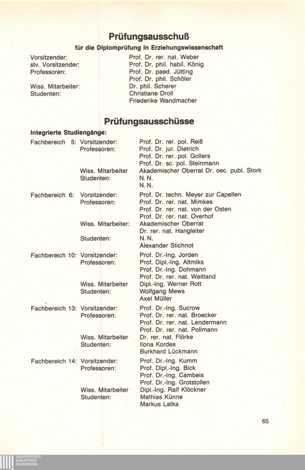 Personal- und Vorlesungsverzeichnis für die Universität Paderborn