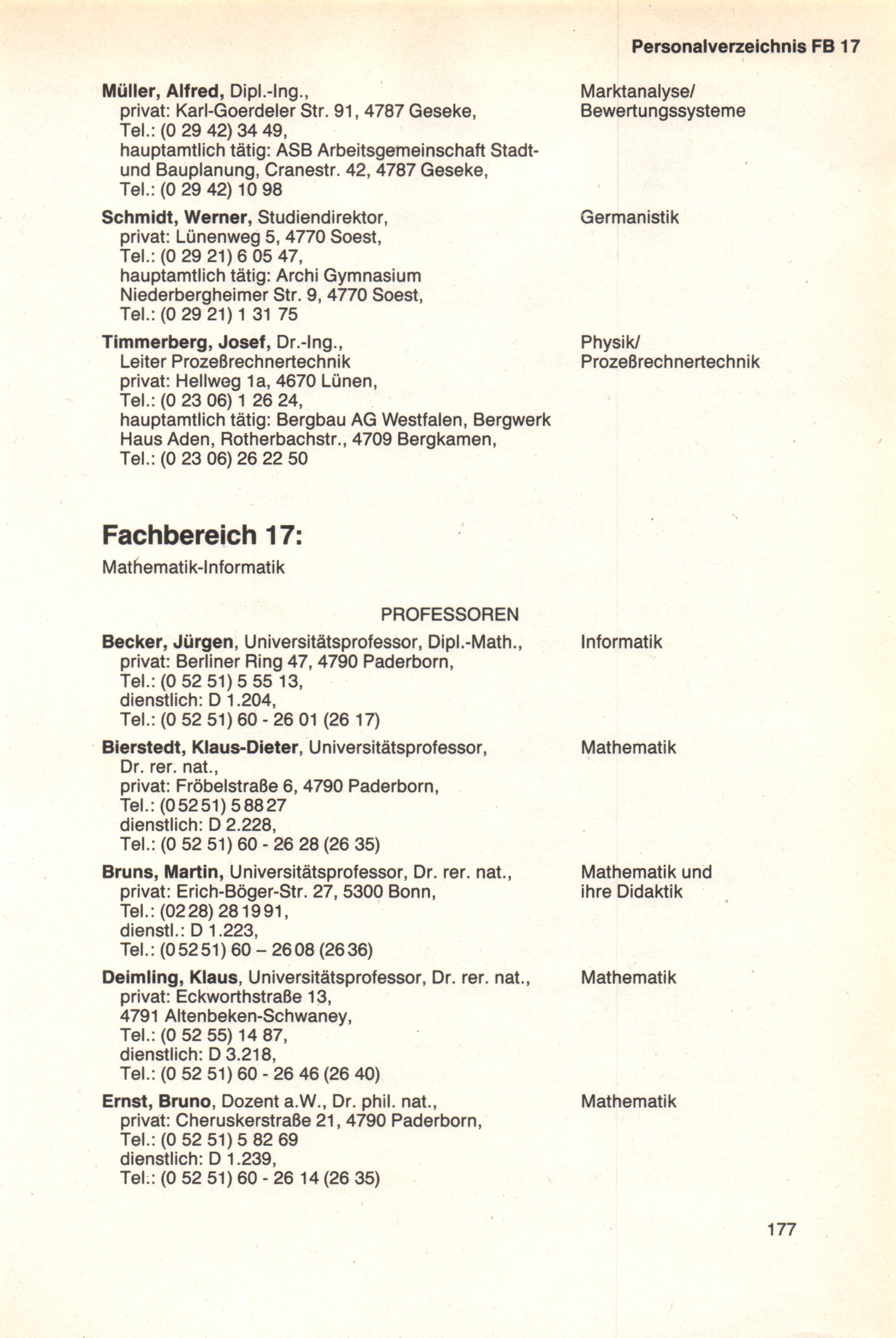 Personal- und Vorlesungsverzeichnis für die Universität Paderborn