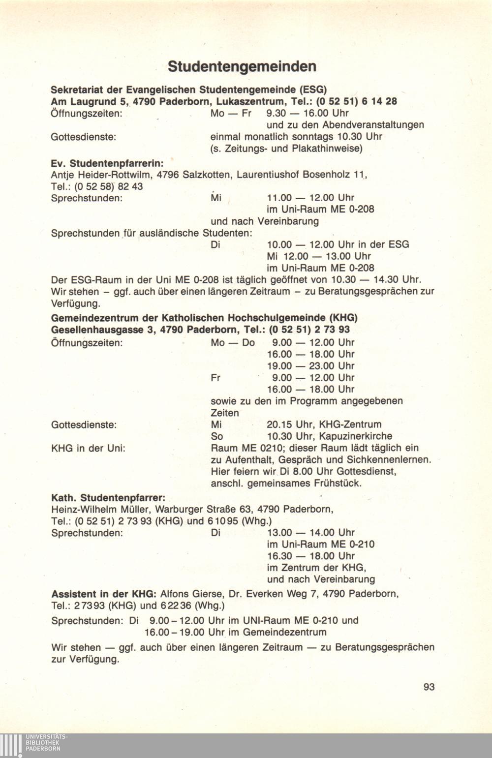 Personal- und Vorlesungsverzeichnis für die Universität Paderborn