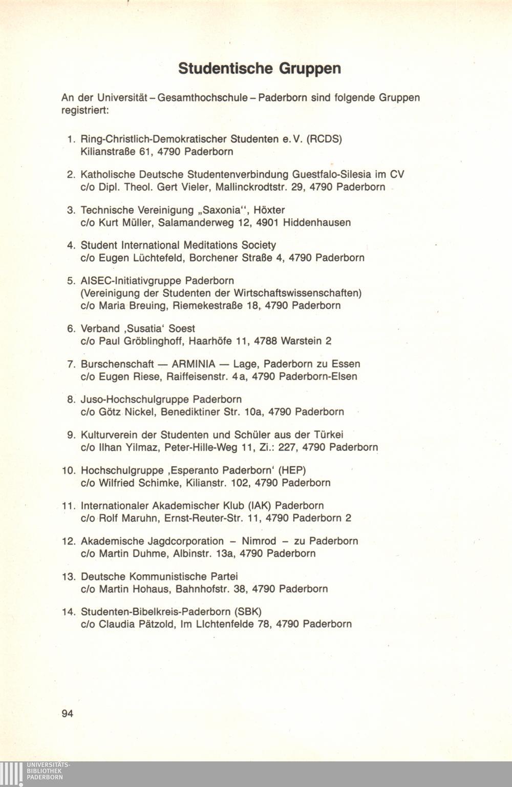 Personal- und Vorlesungsverzeichnis für die Universität Paderborn