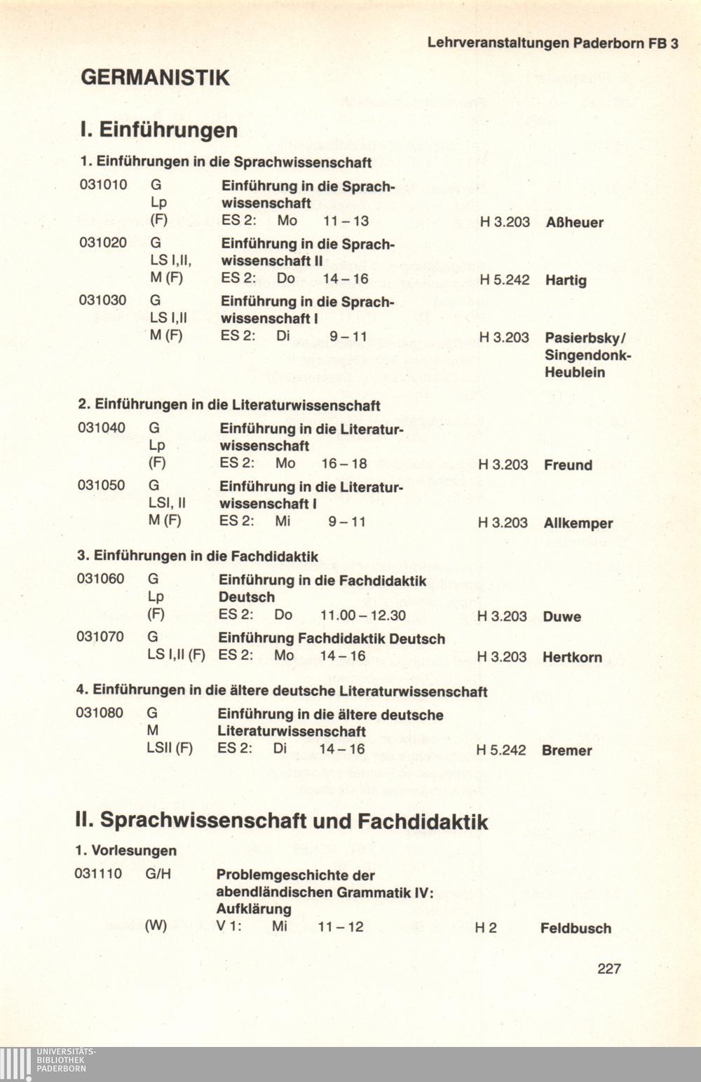 Personal- und Vorlesungsverzeichnis für die Universität Paderborn