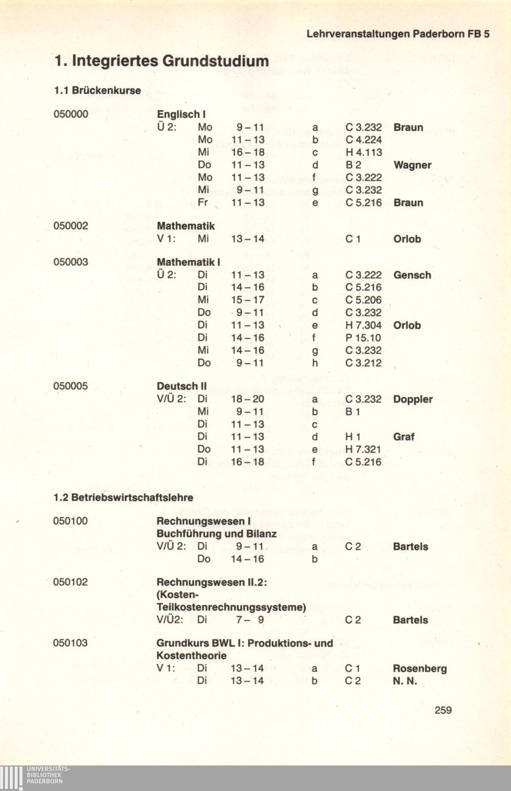 Personal- und Vorlesungsverzeichnis für die Universität Paderborn