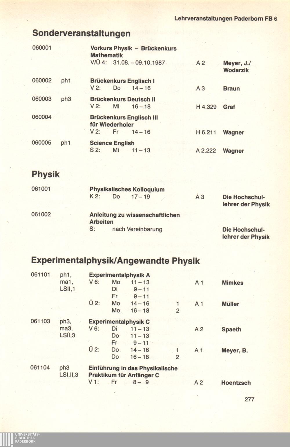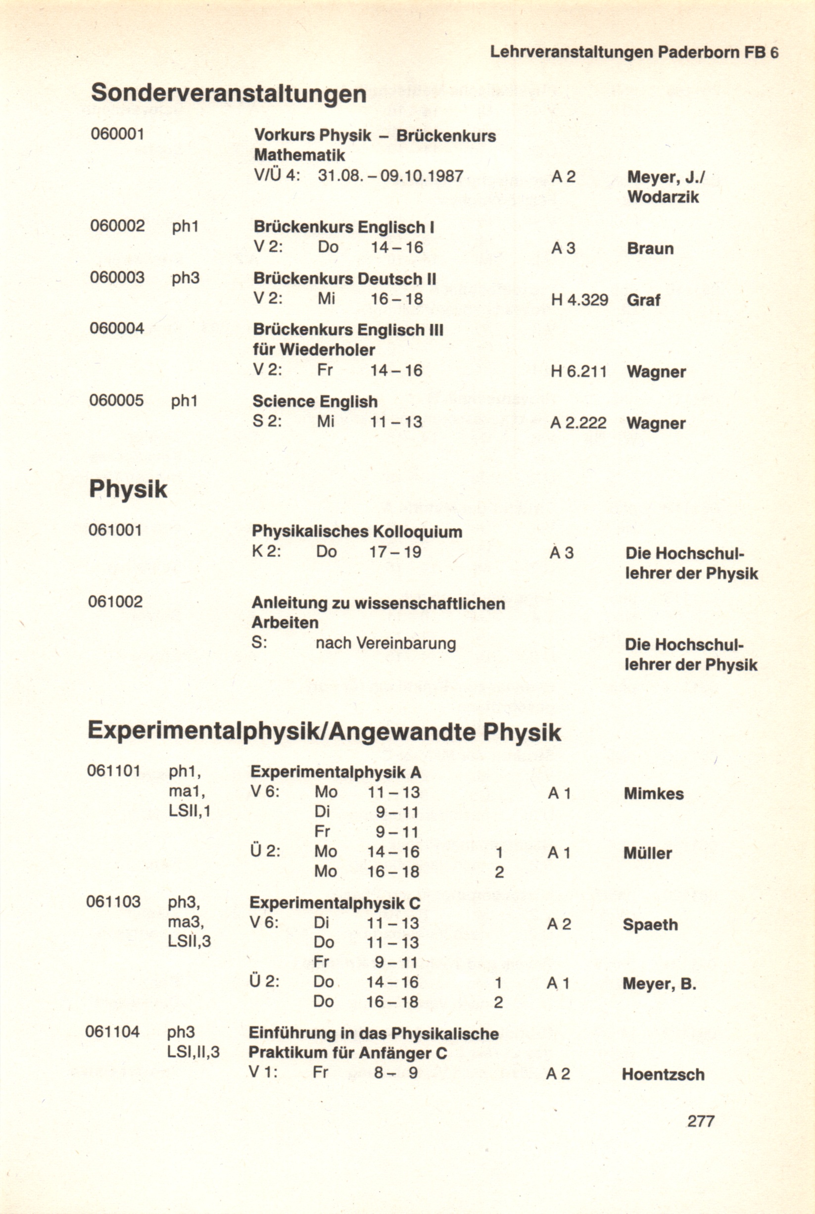 Personal- und Vorlesungsverzeichnis für die Universität Paderborn