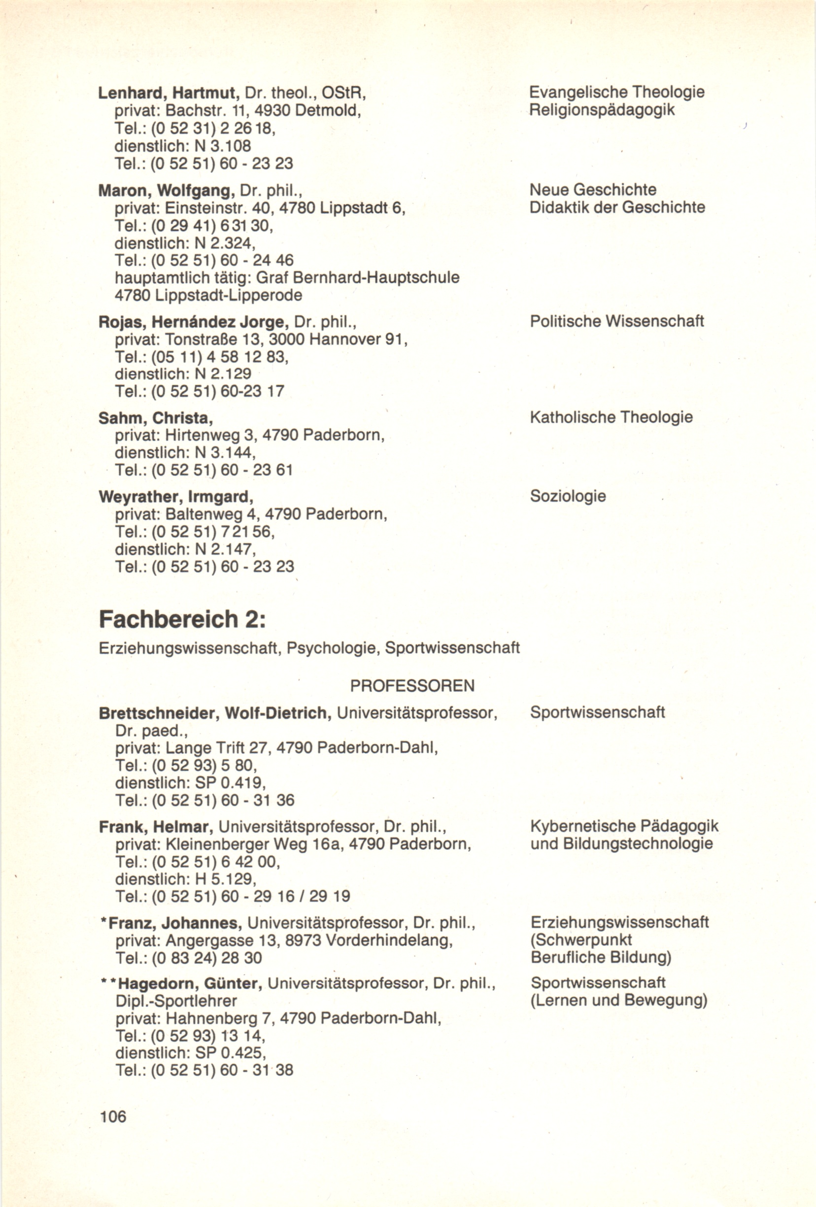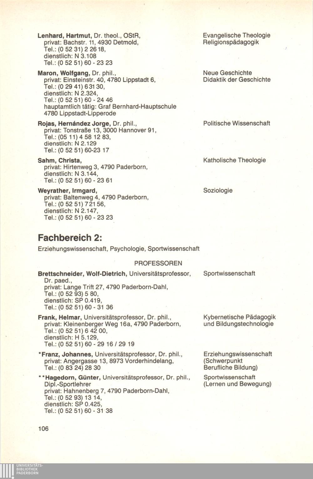 Personal- und Vorlesungsverzeichnis für die Universität Paderborn