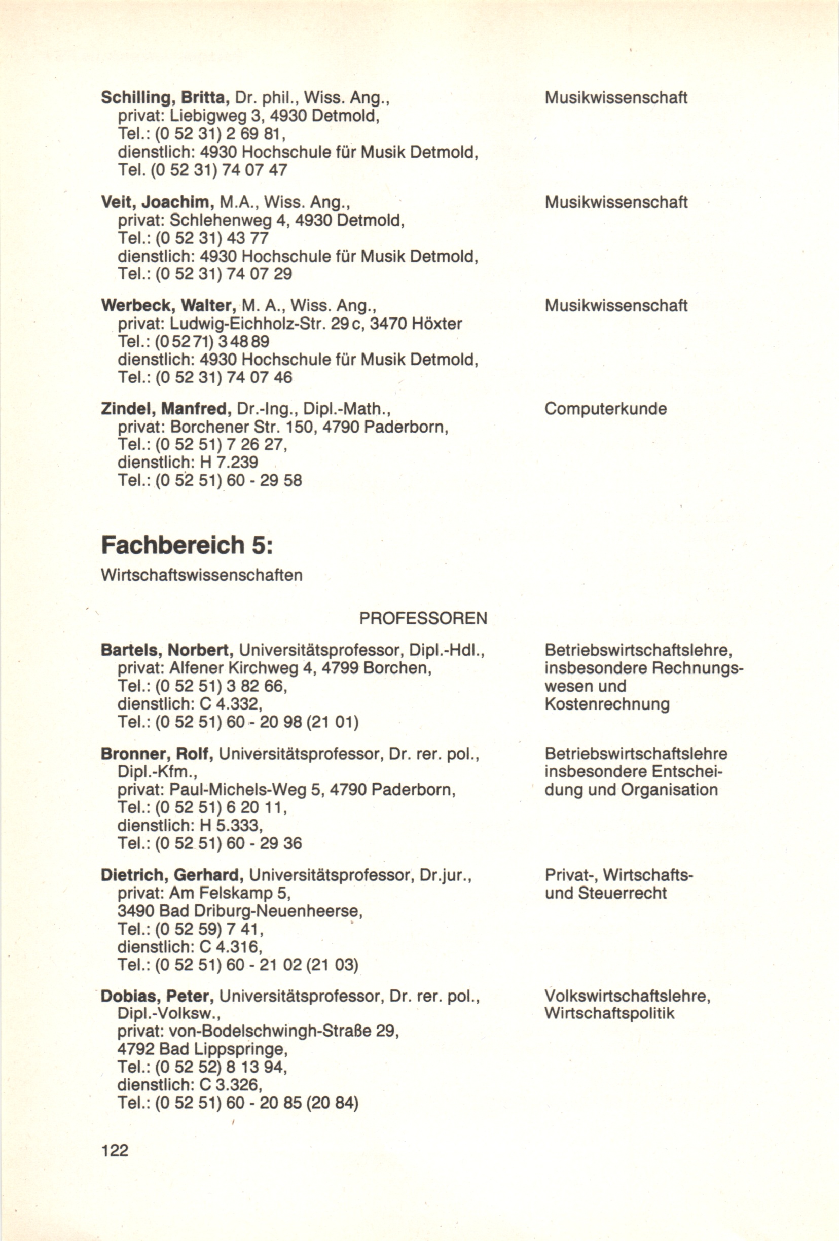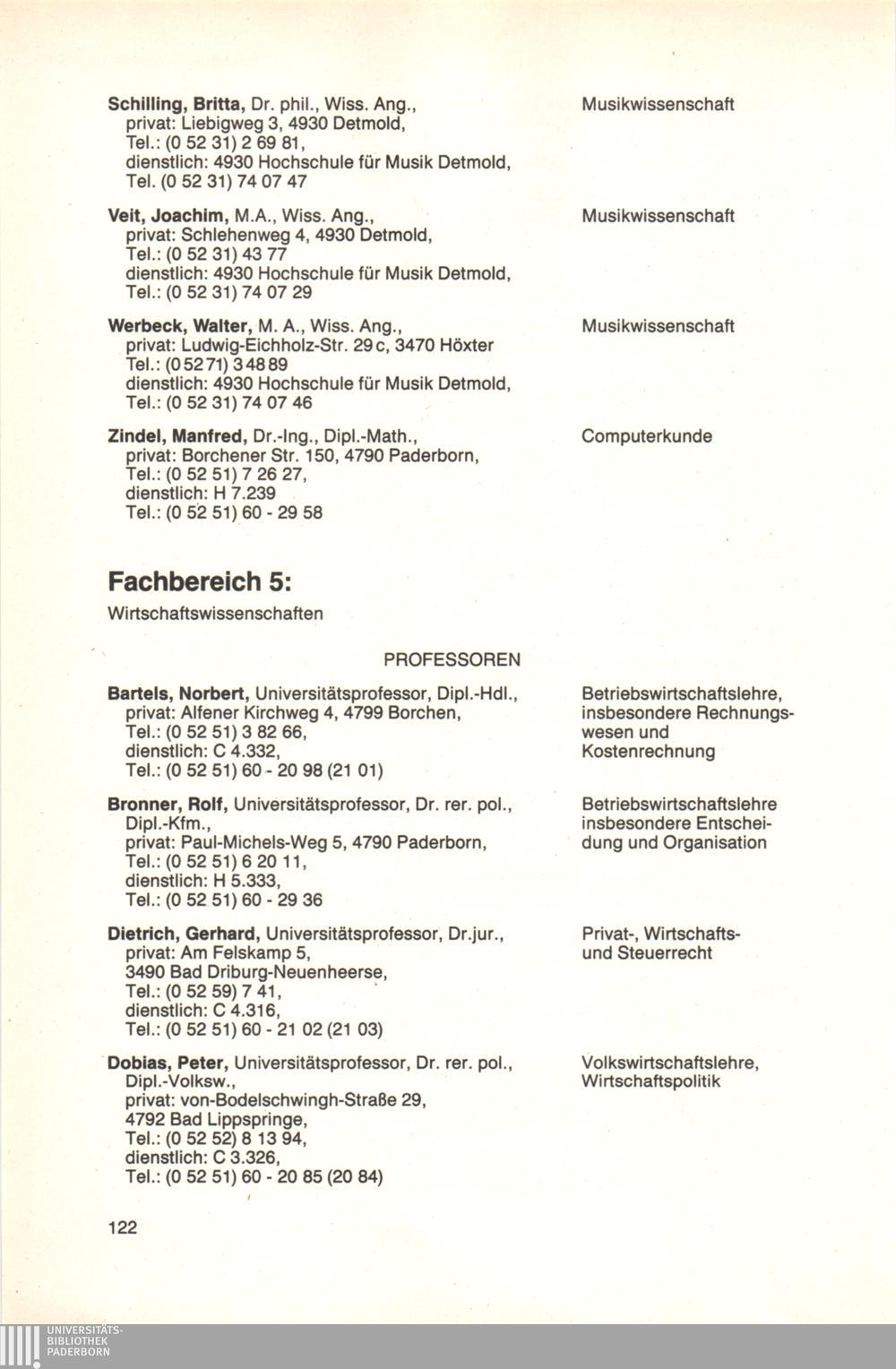 Personal- und Vorlesungsverzeichnis für die Universität Paderborn