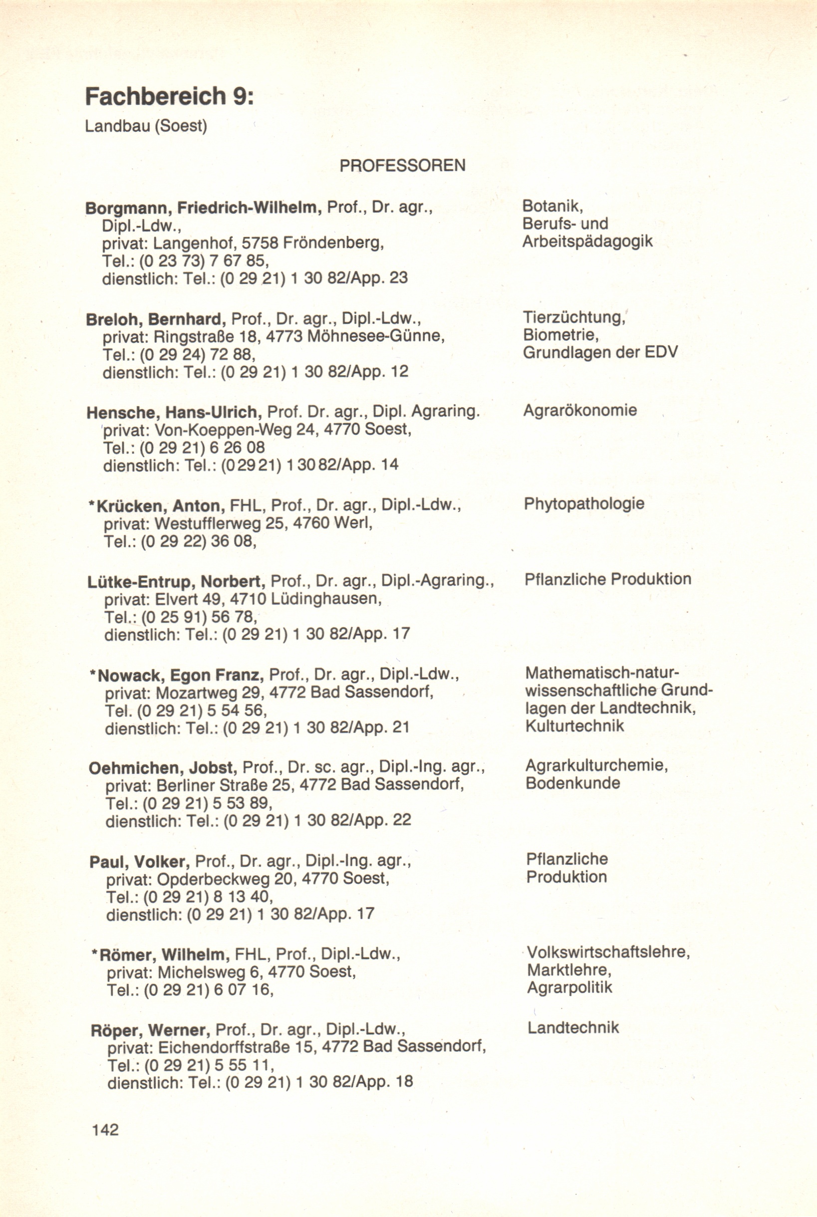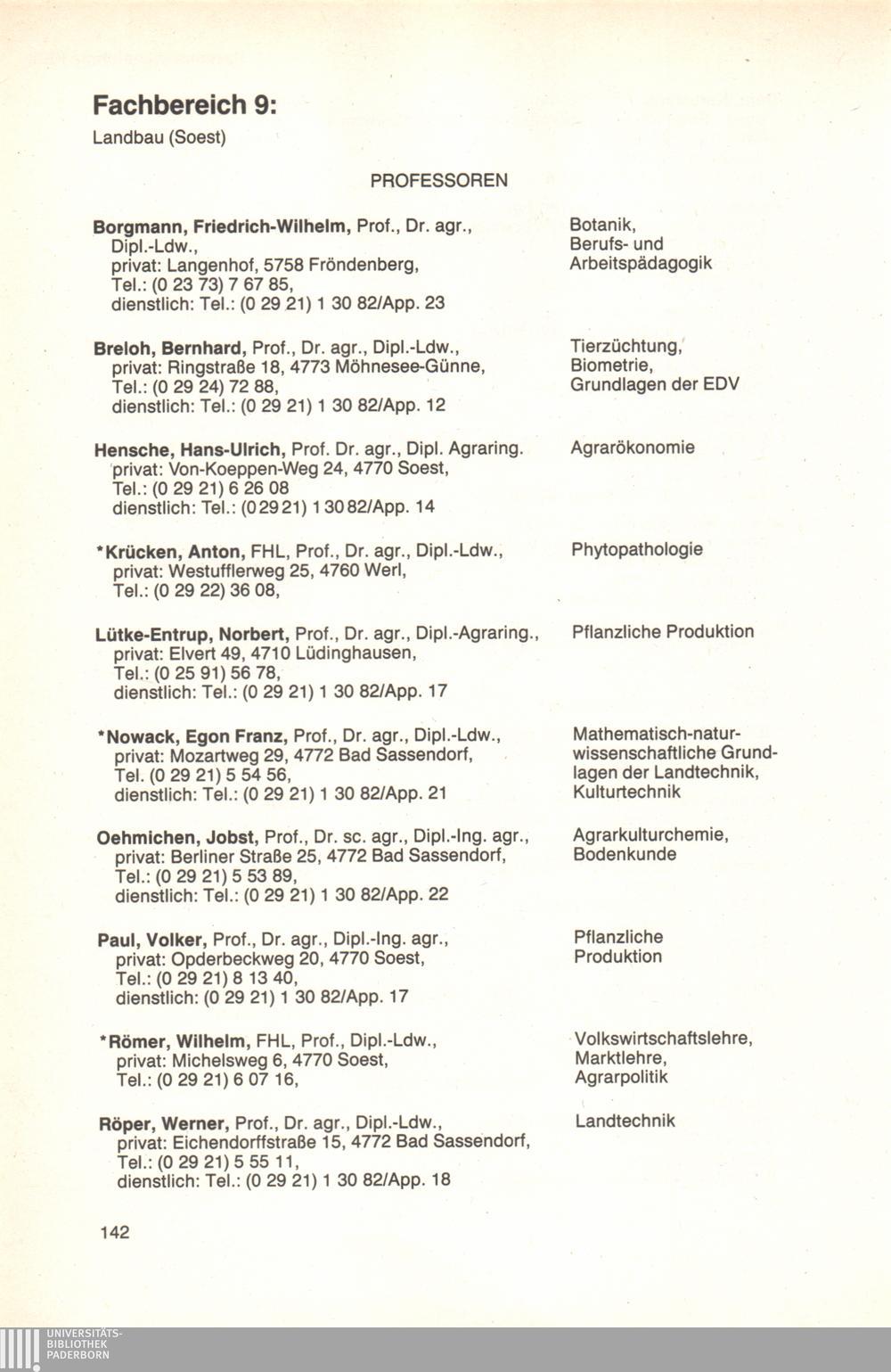 Fachbereich 9: Landbau (Soest)