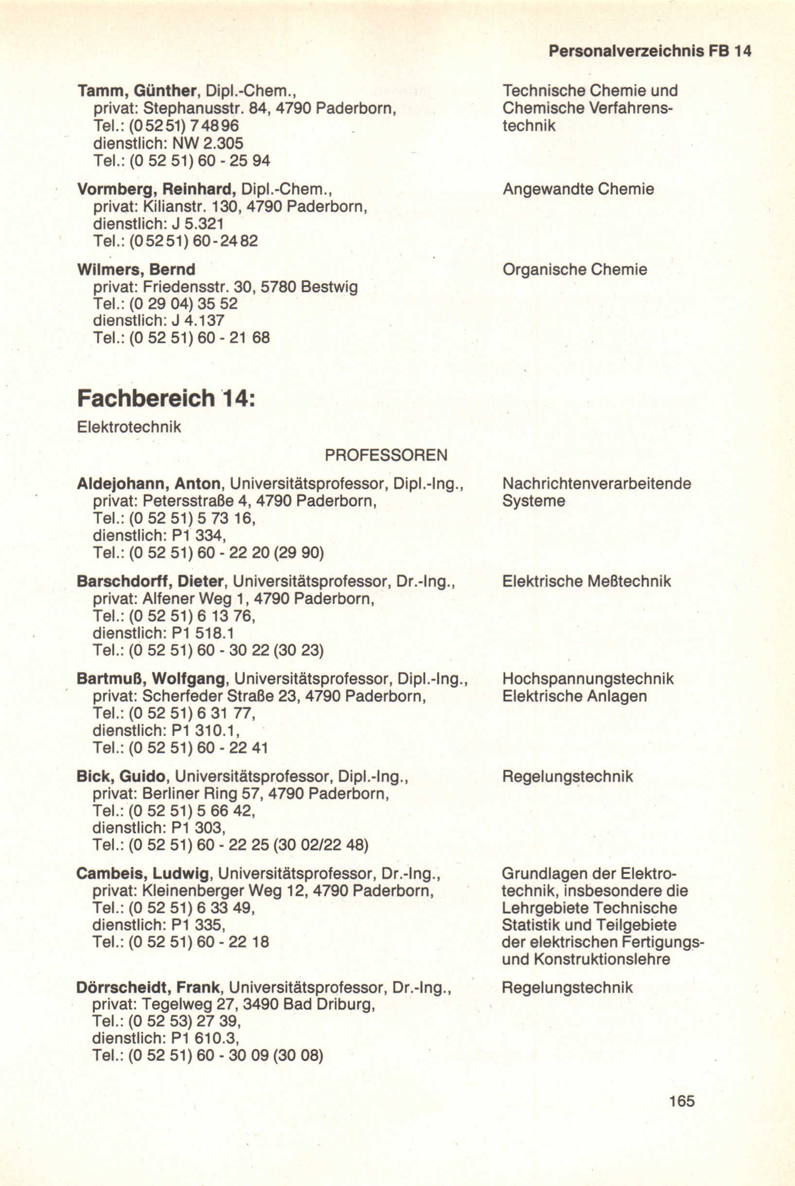 Personal- und Vorlesungsverzeichnis für die Universität Paderborn