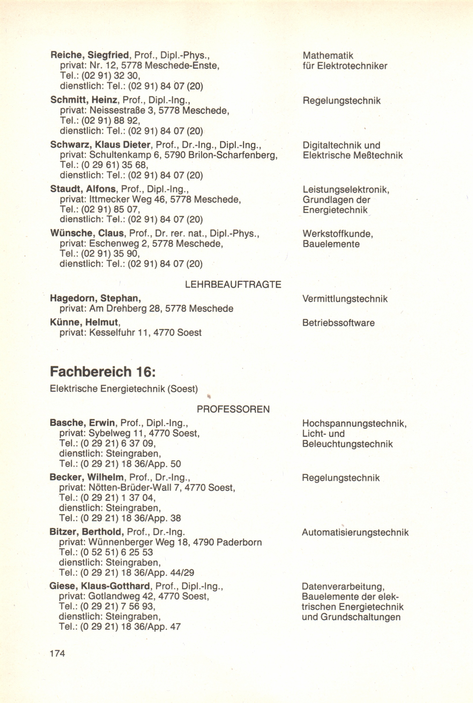 Fachbereich 16: Elektrische Energietechnik (Soest)