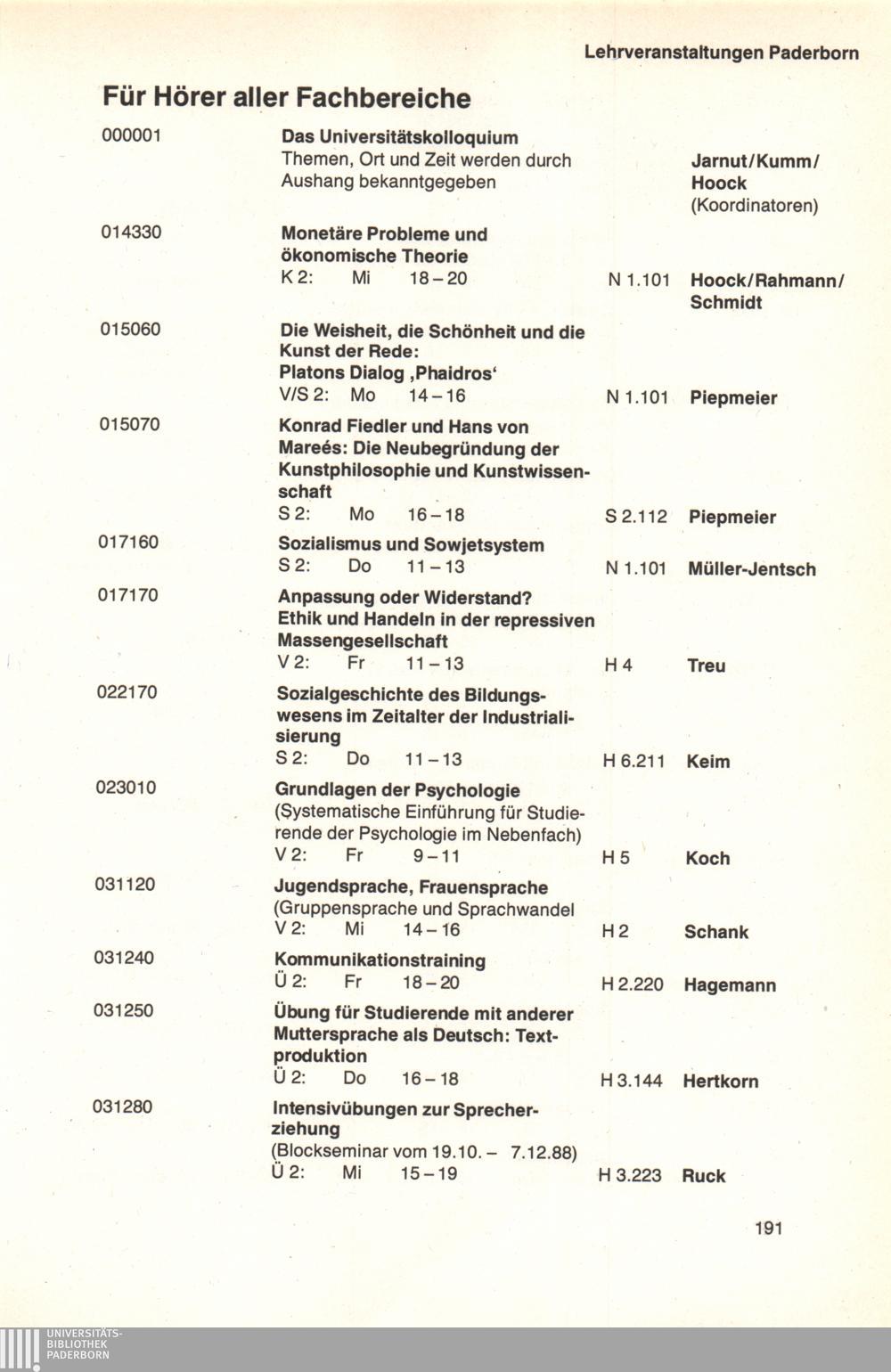 Personal- und Vorlesungsverzeichnis für die Universität Paderborn