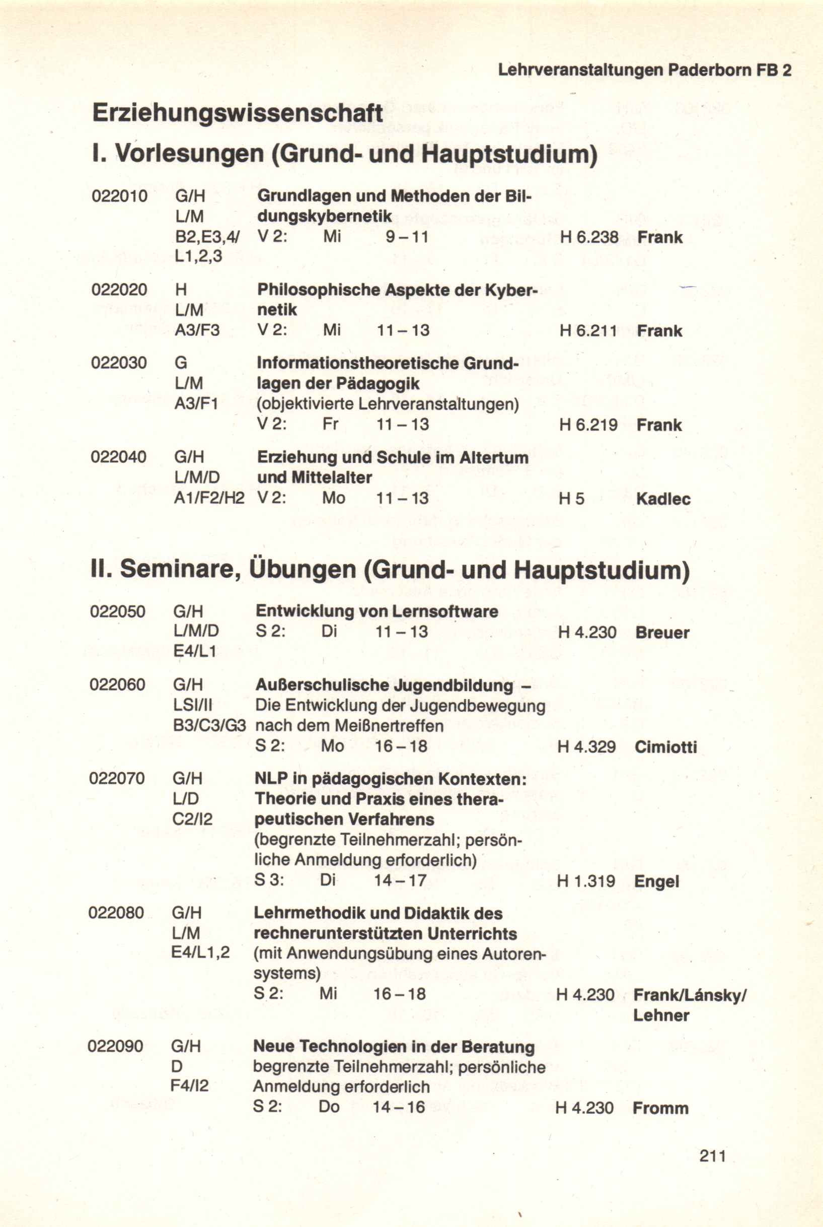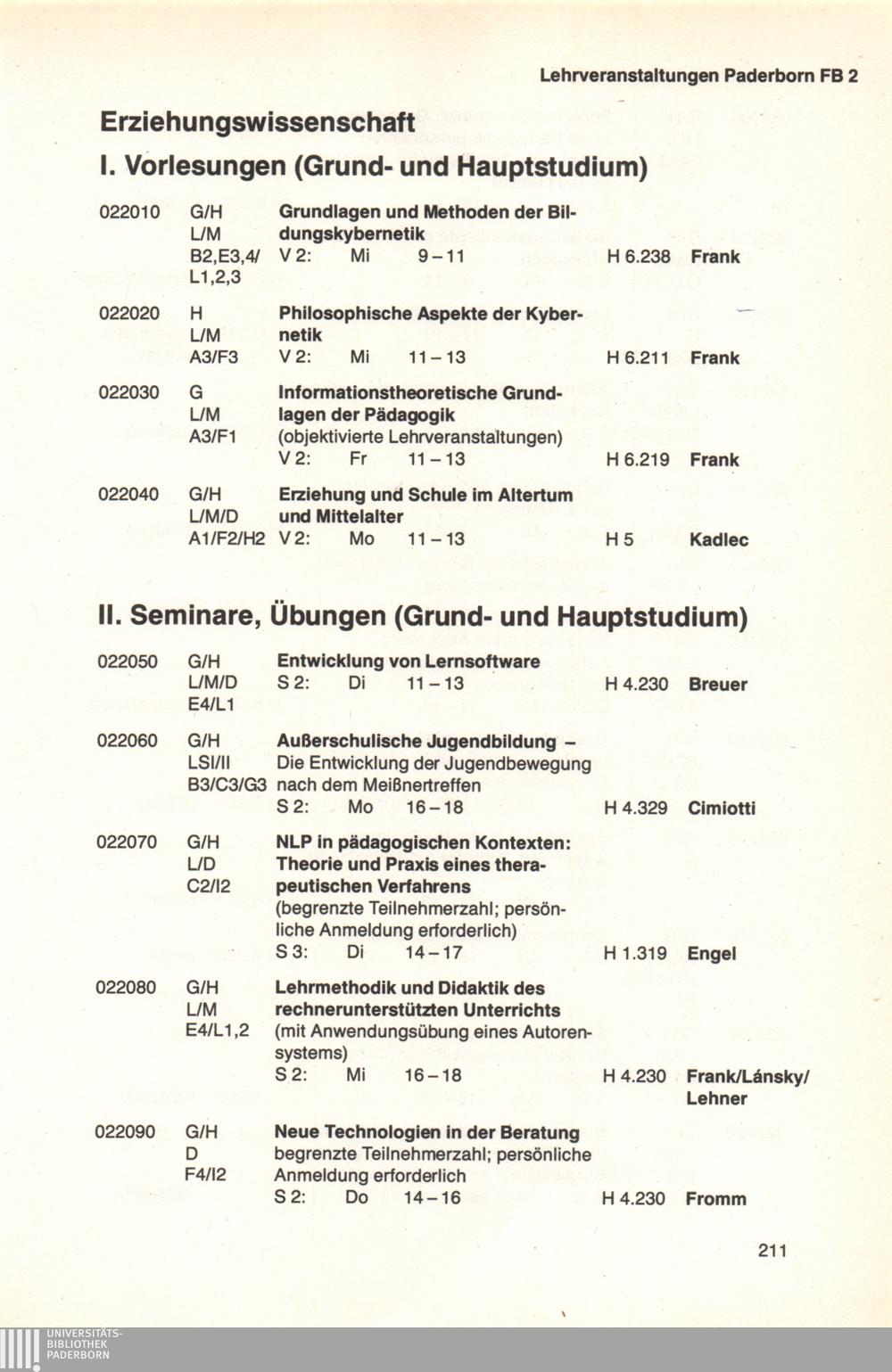 Personal- und Vorlesungsverzeichnis für die Universität Paderborn