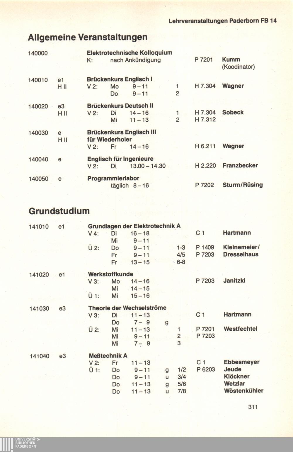 Personal- und Vorlesungsverzeichnis für die Universität Paderborn