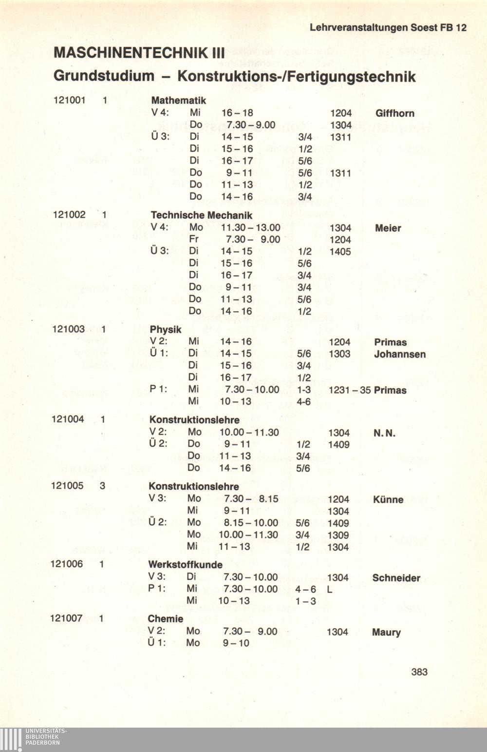 Personal- und Vorlesungsverzeichnis für die Universität Paderborn