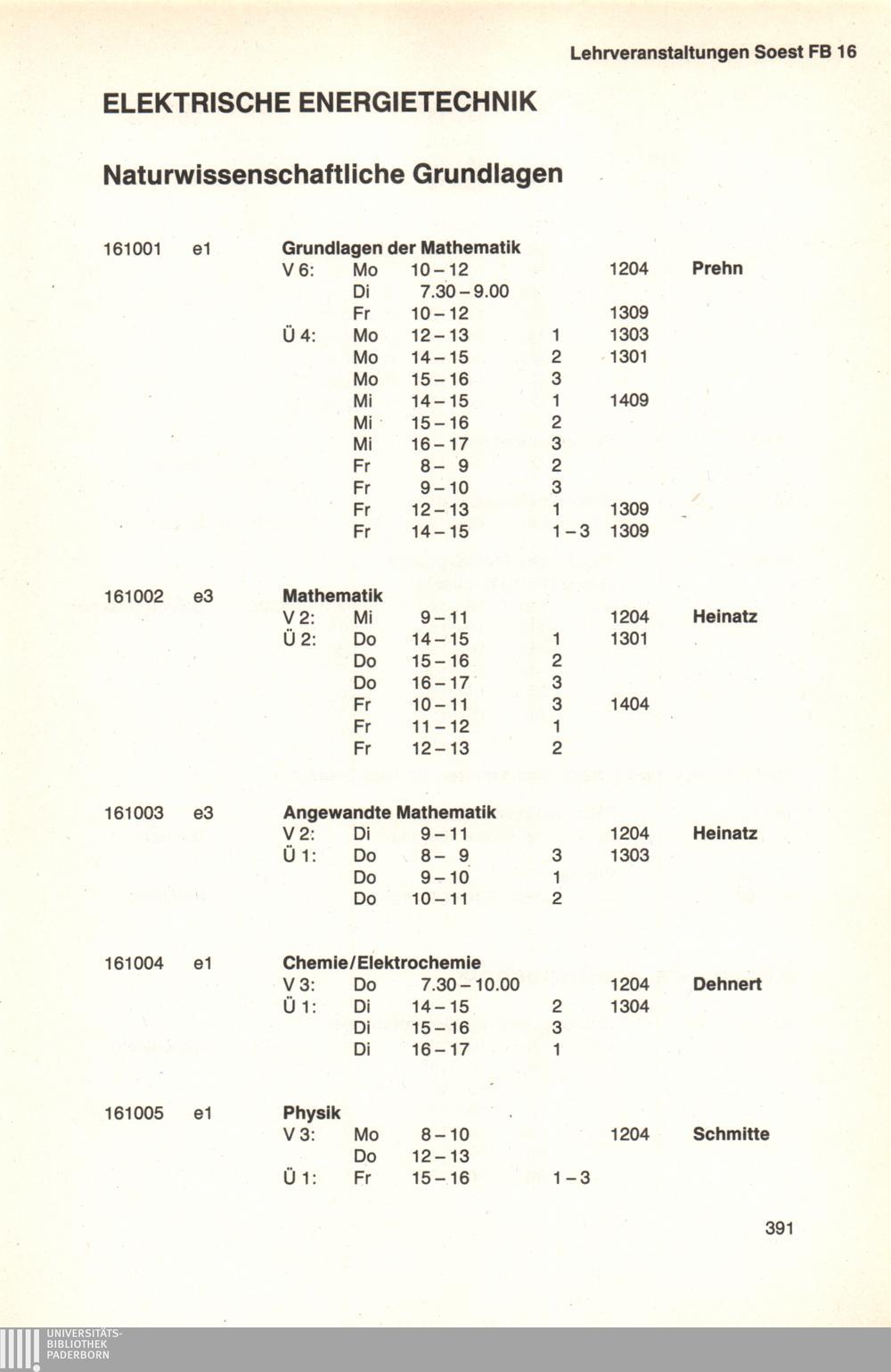 Personal- und Vorlesungsverzeichnis für die Universität Paderborn