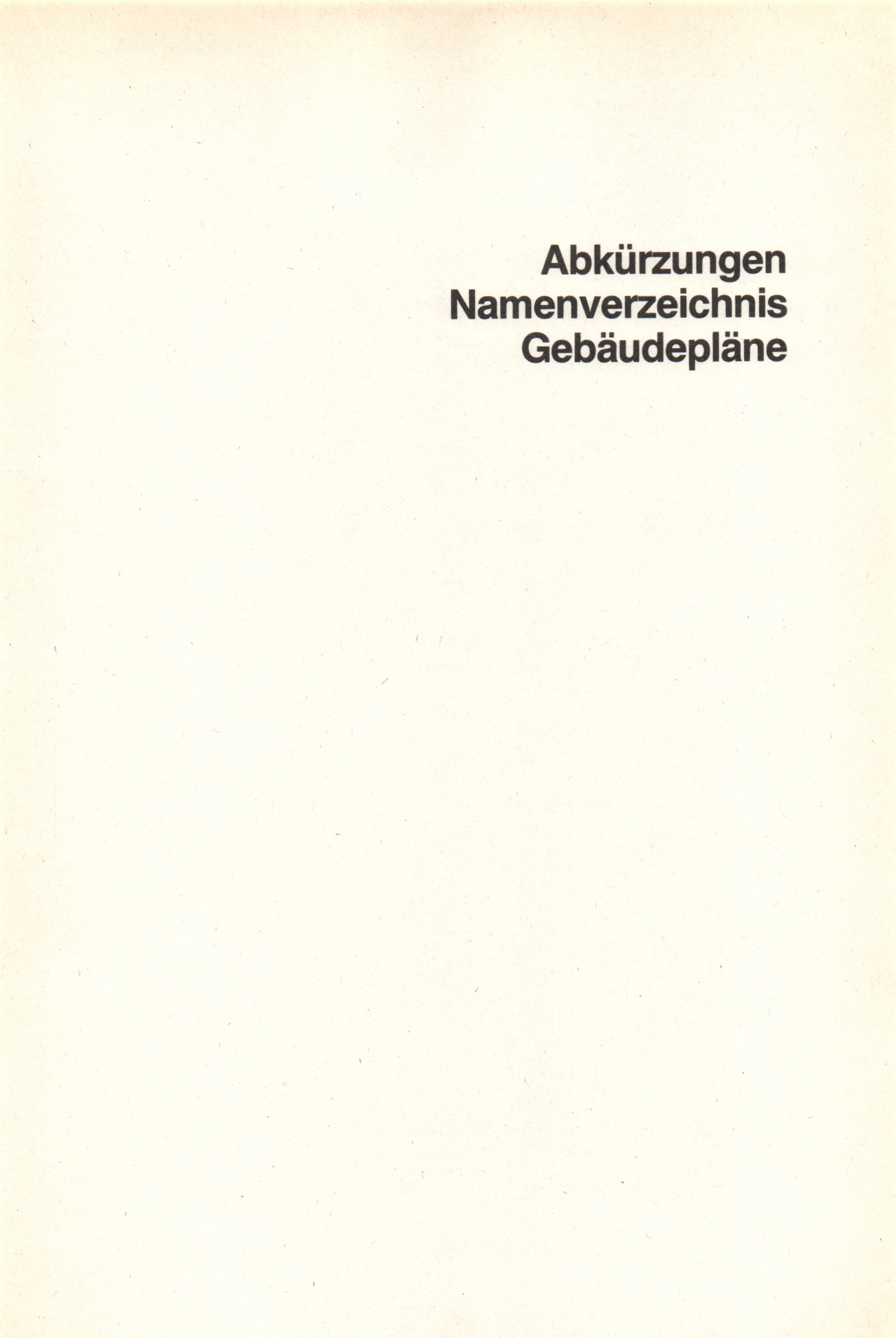 Abkürzungen, Namenverzeichnis, Lagepläne