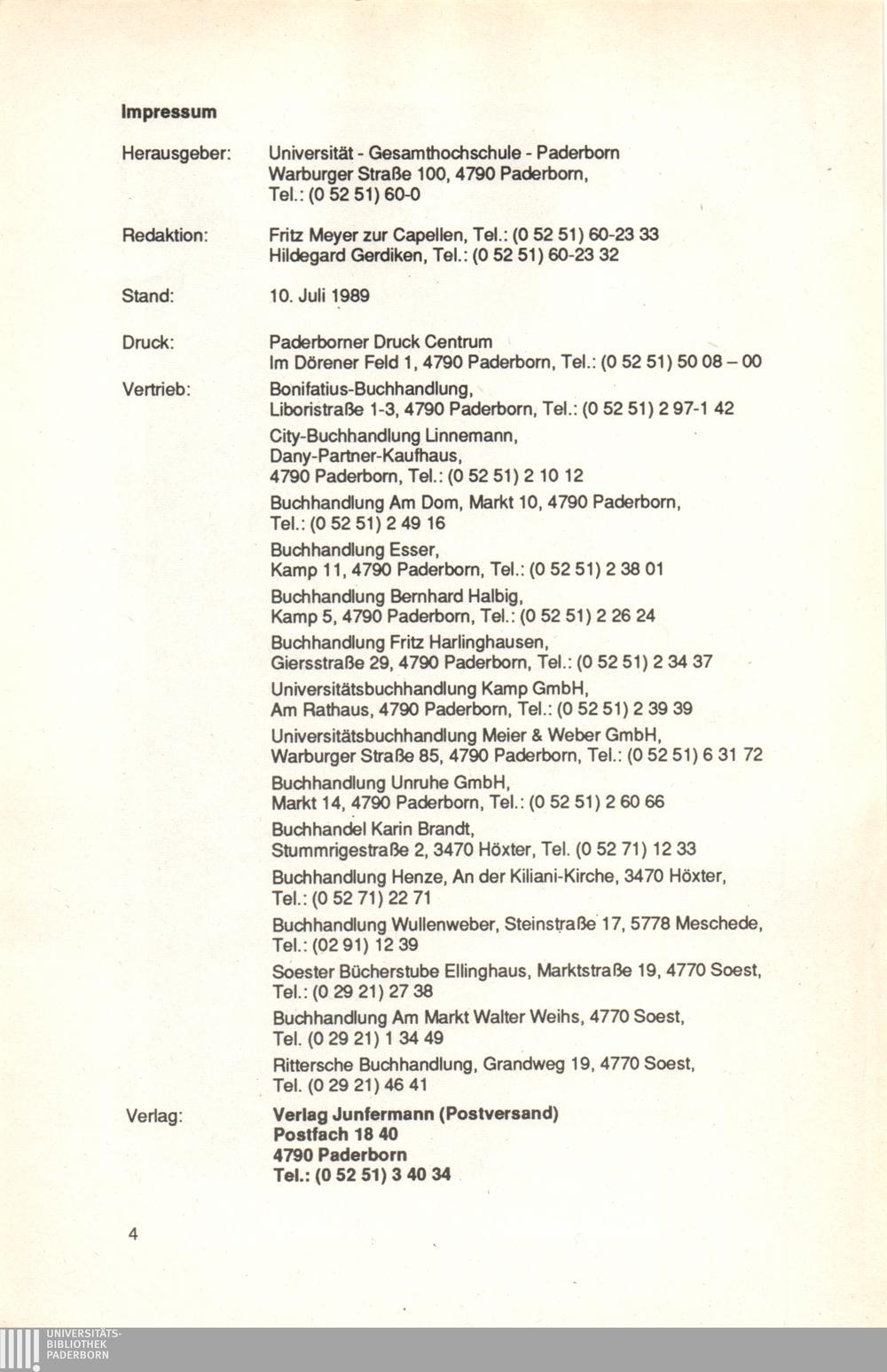 Personal- und Vorlesungsverzeichnis für die Universität Paderborn