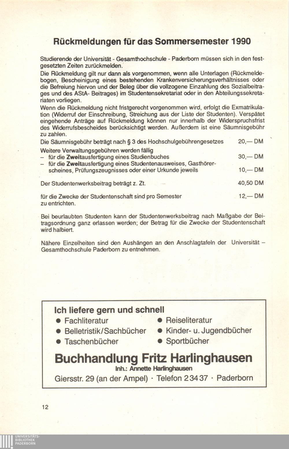 Personal- und Vorlesungsverzeichnis für die Universität Paderborn