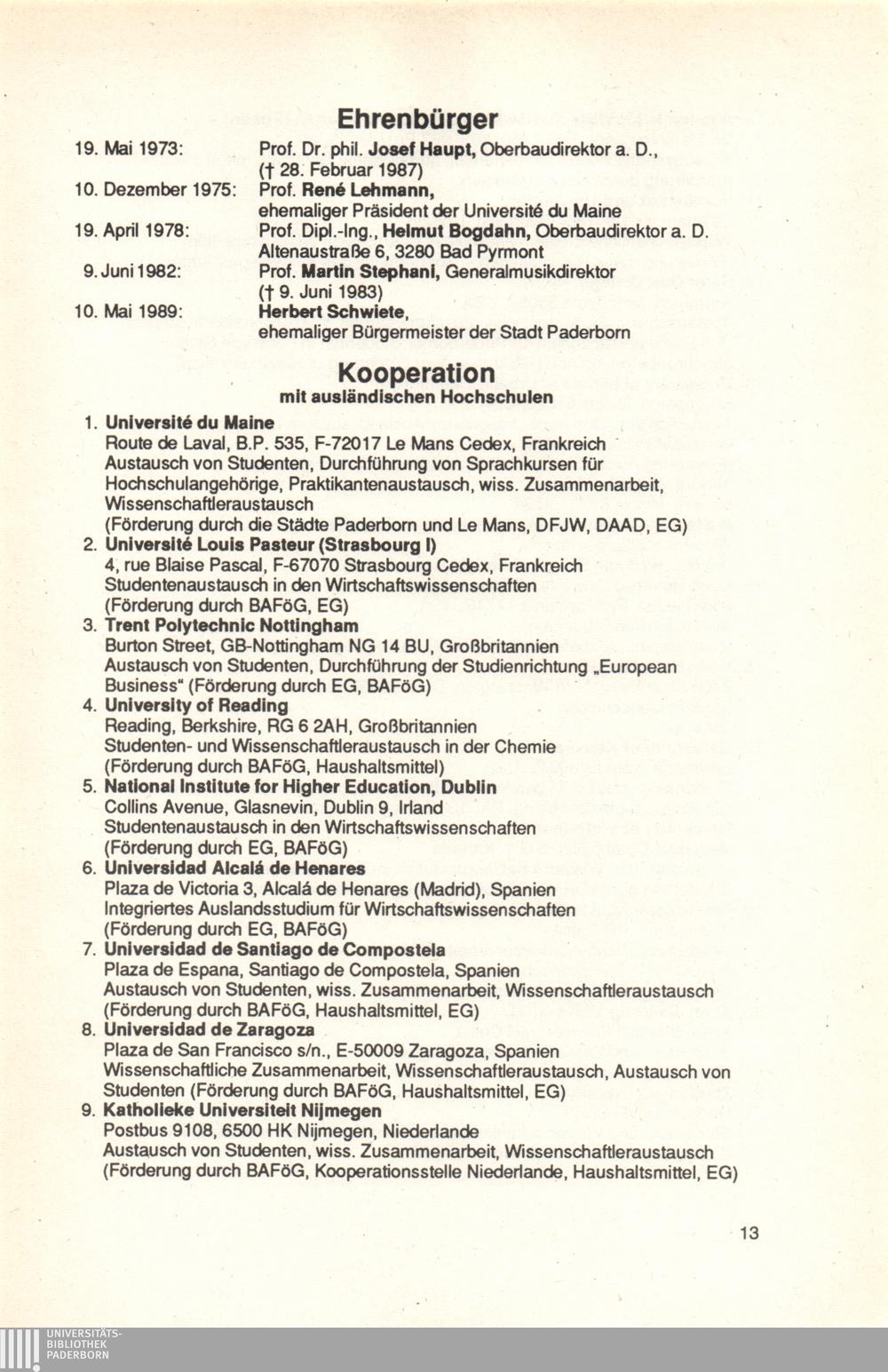 Personal- und Vorlesungsverzeichnis für die Universität Paderborn