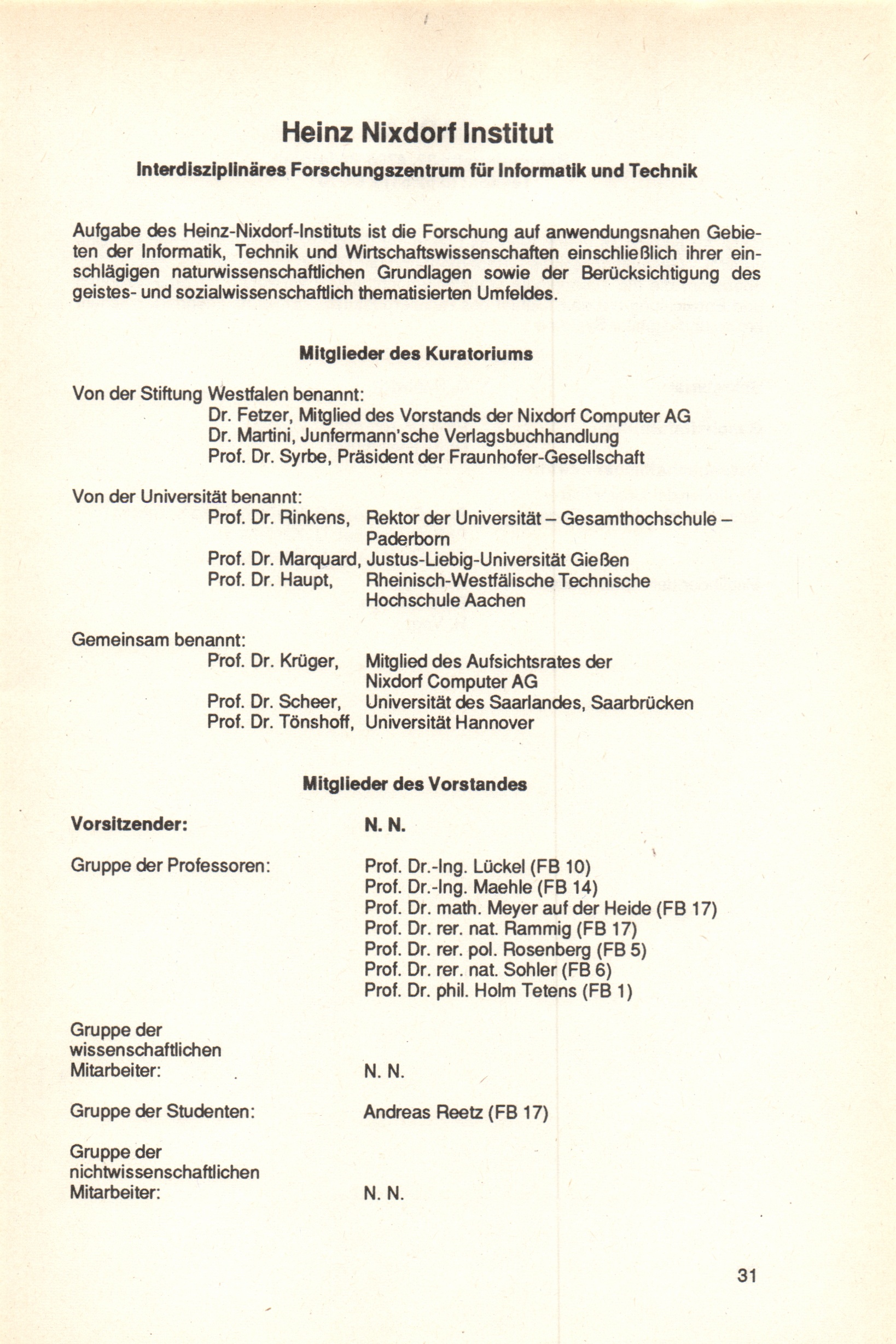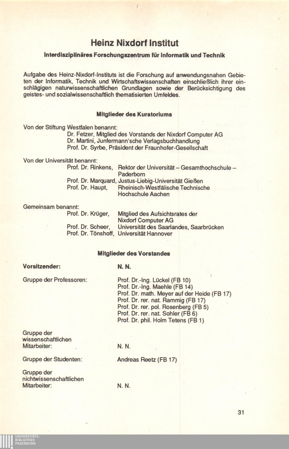 Personal- und Vorlesungsverzeichnis für die Universität Paderborn