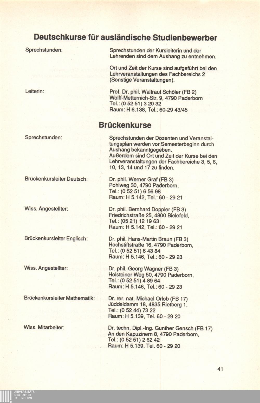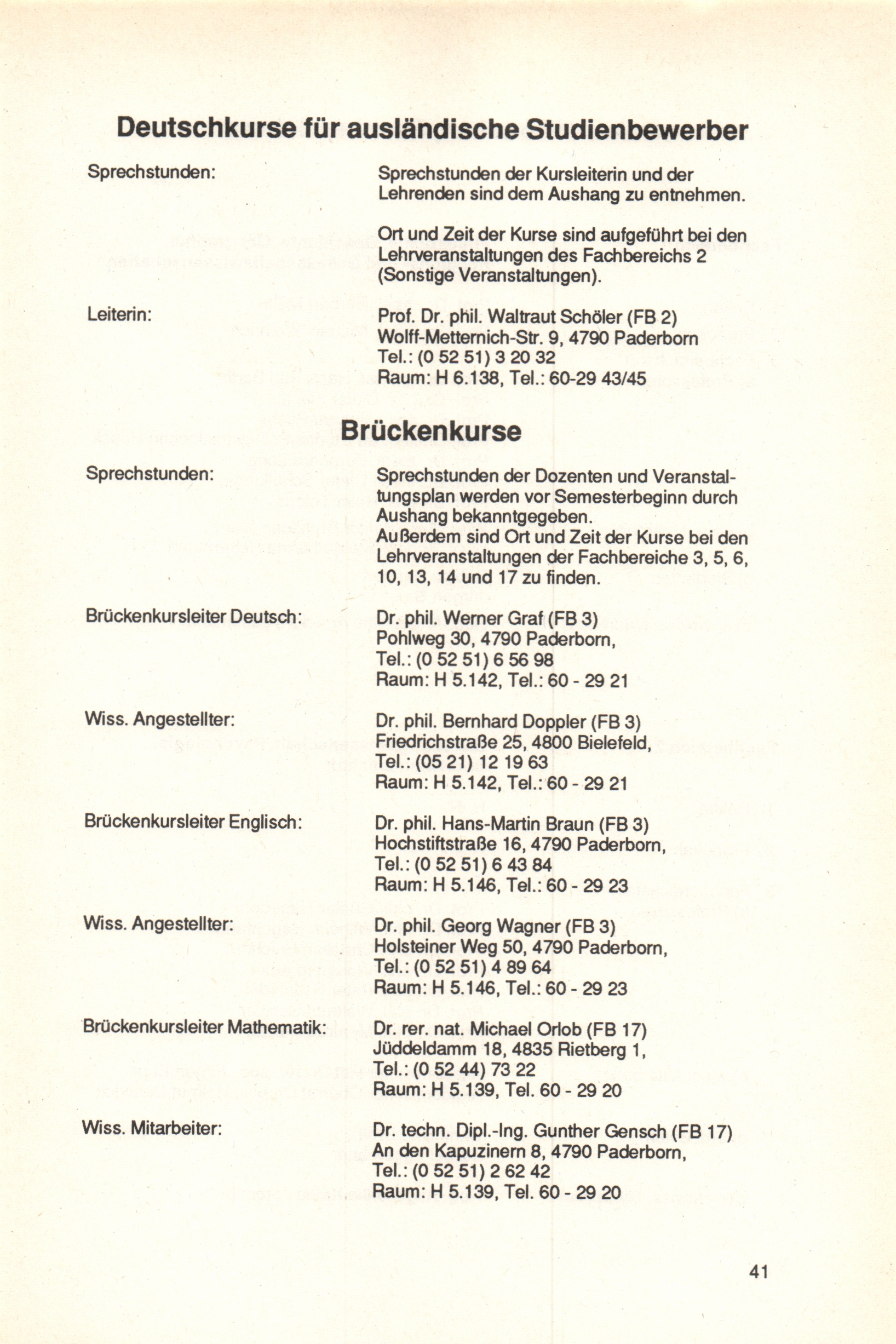 Personal- und Vorlesungsverzeichnis für die Universität Paderborn