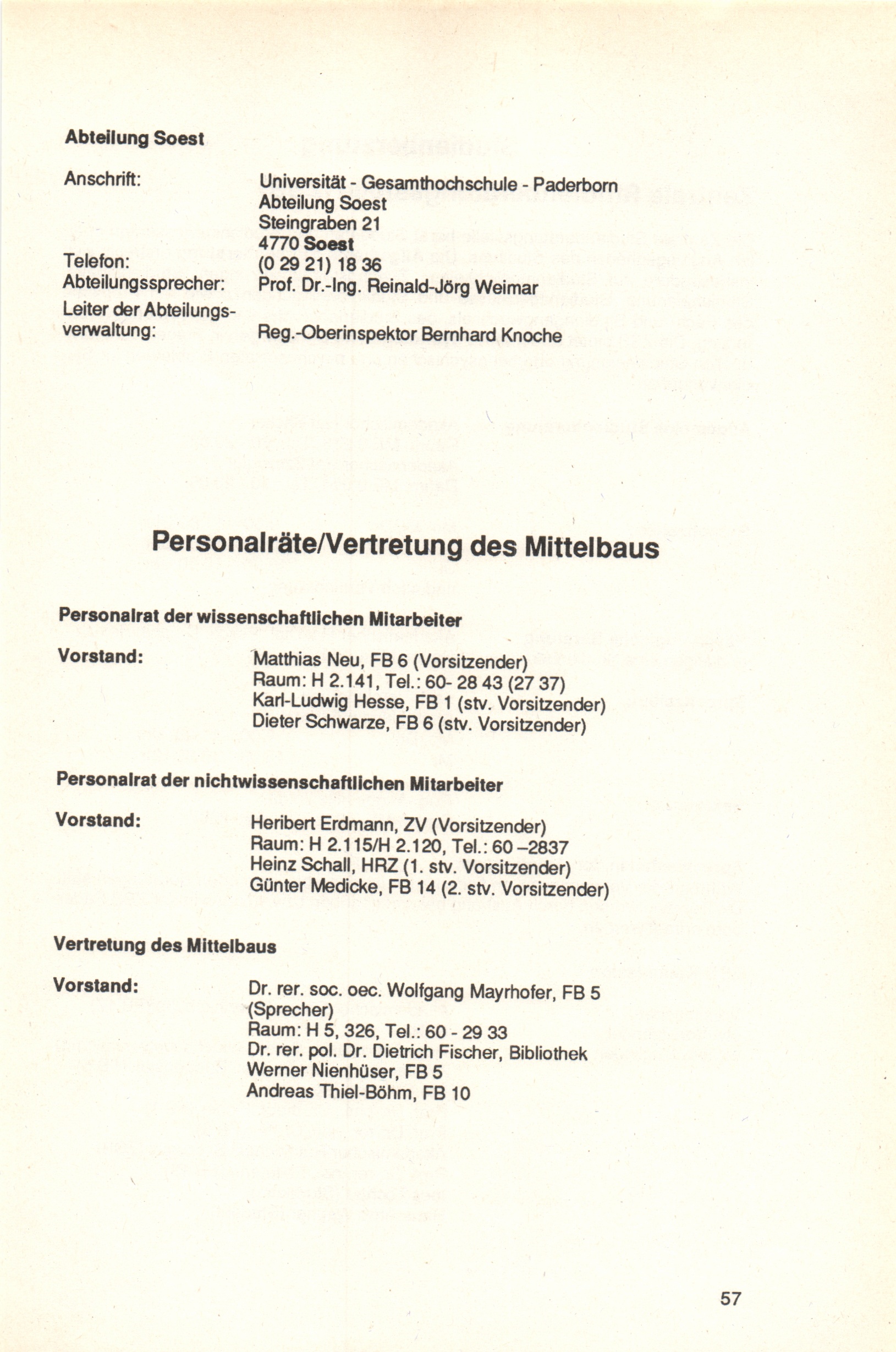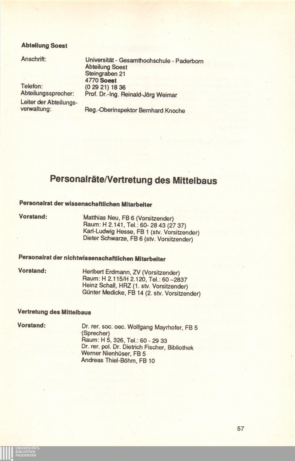 Personalräte/Vertretung des Mittelbaus