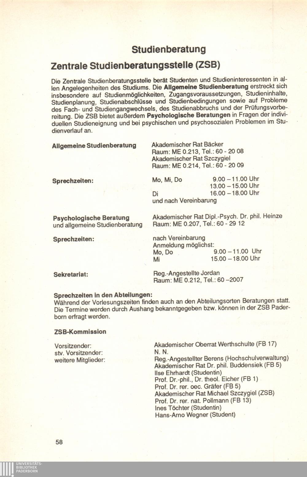 Personal- und Vorlesungsverzeichnis für die Universität Paderborn