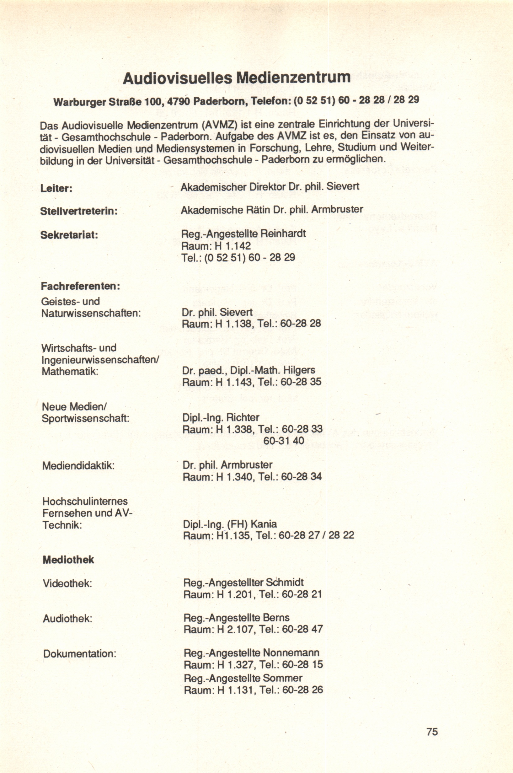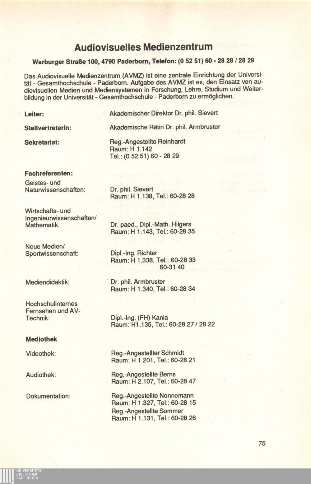 Personal- und Vorlesungsverzeichnis für die Universität Paderborn