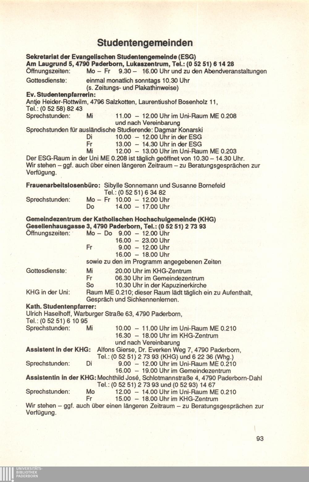 Personal- und Vorlesungsverzeichnis für die Universität Paderborn