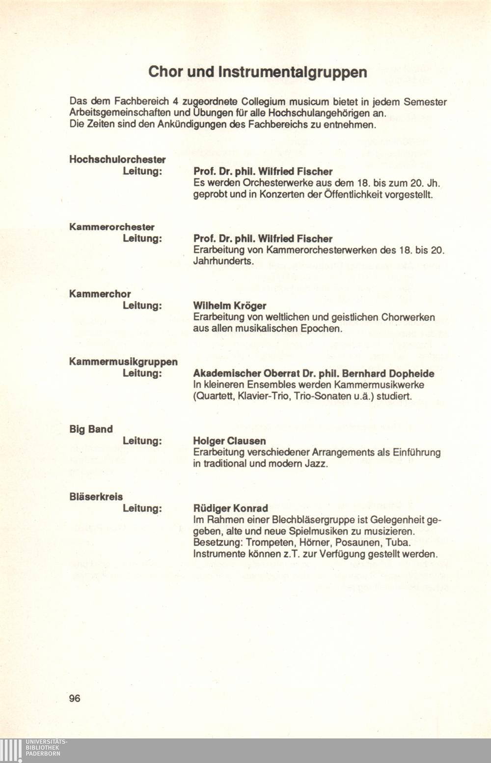 Personal- und Vorlesungsverzeichnis für die Universität Paderborn