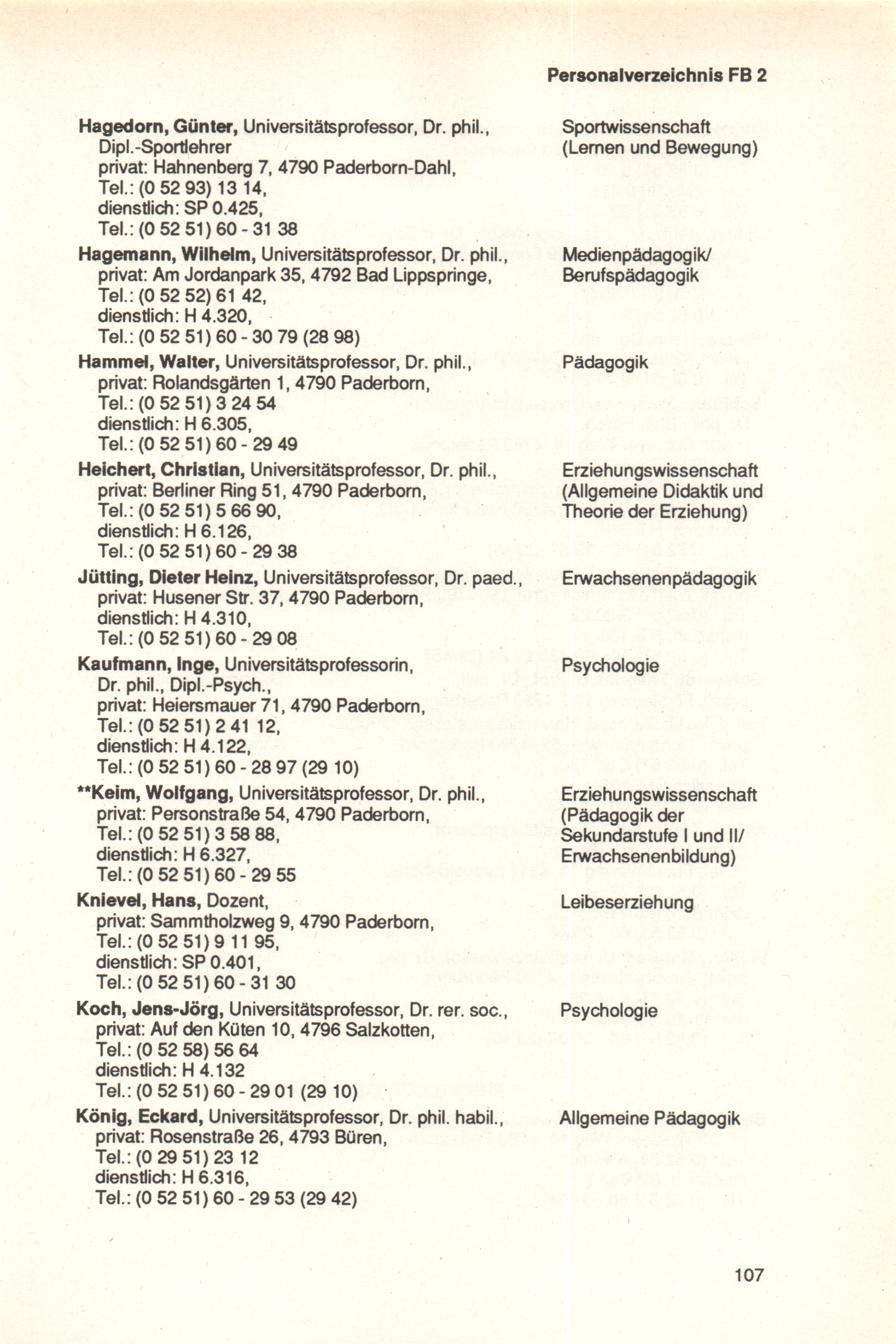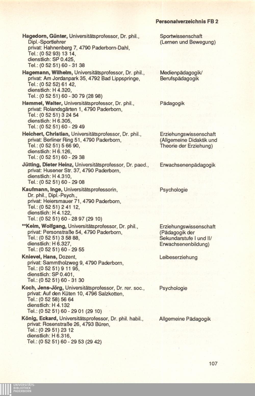 Personal- und Vorlesungsverzeichnis für die Universität Paderborn