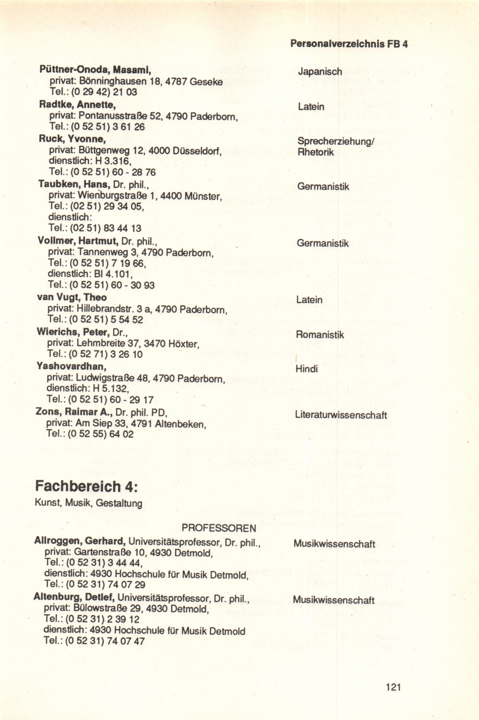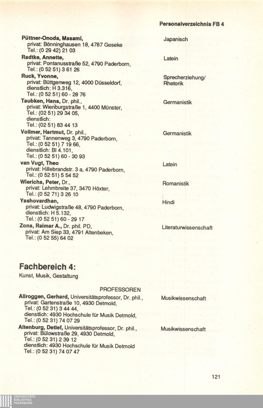 Personal- und Vorlesungsverzeichnis für die Universität Paderborn