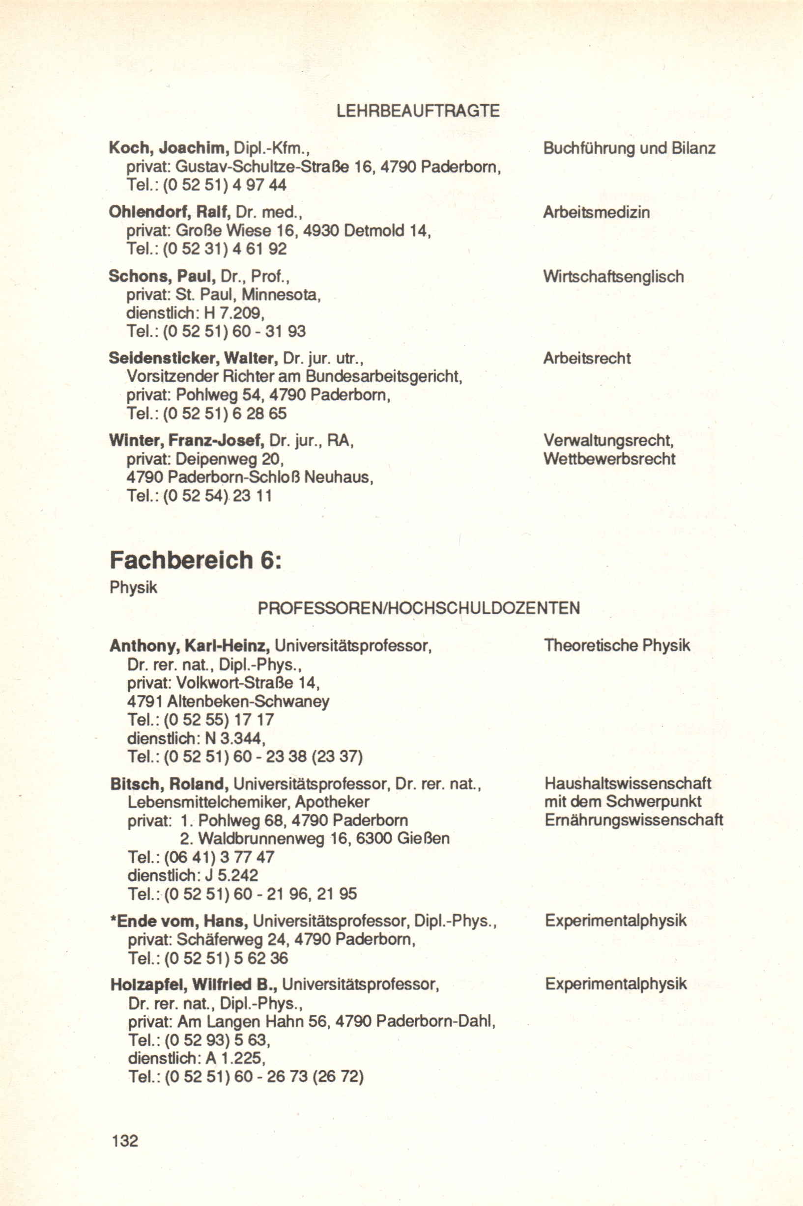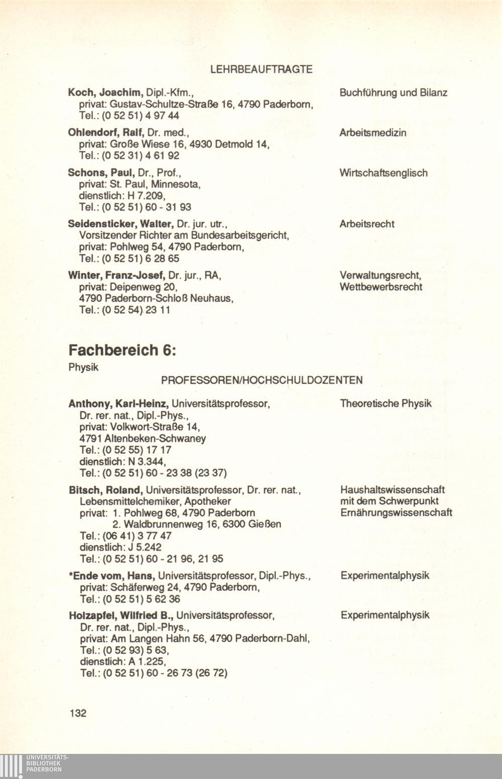 Personal- und Vorlesungsverzeichnis für die Universität Paderborn