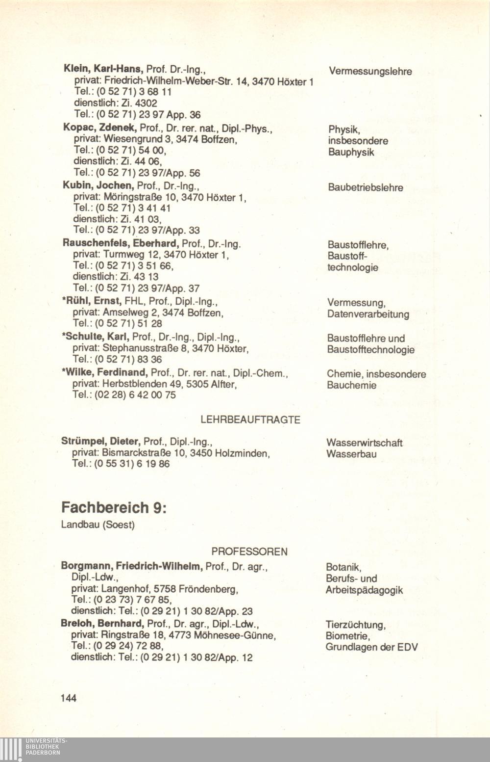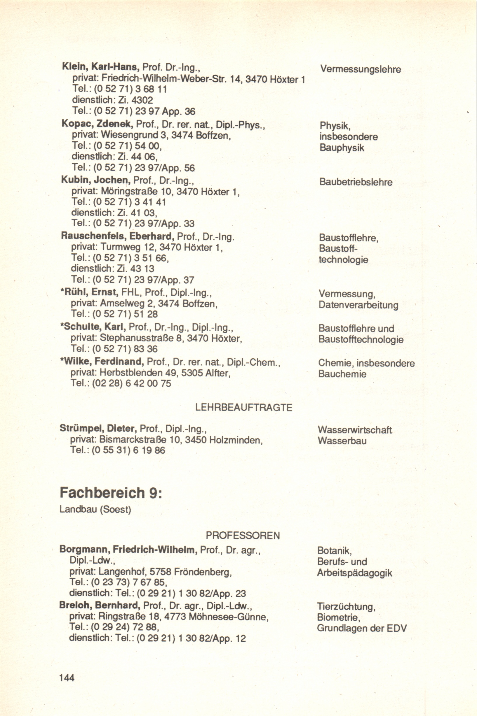 Fachbereich 9: Landbau (Soest)