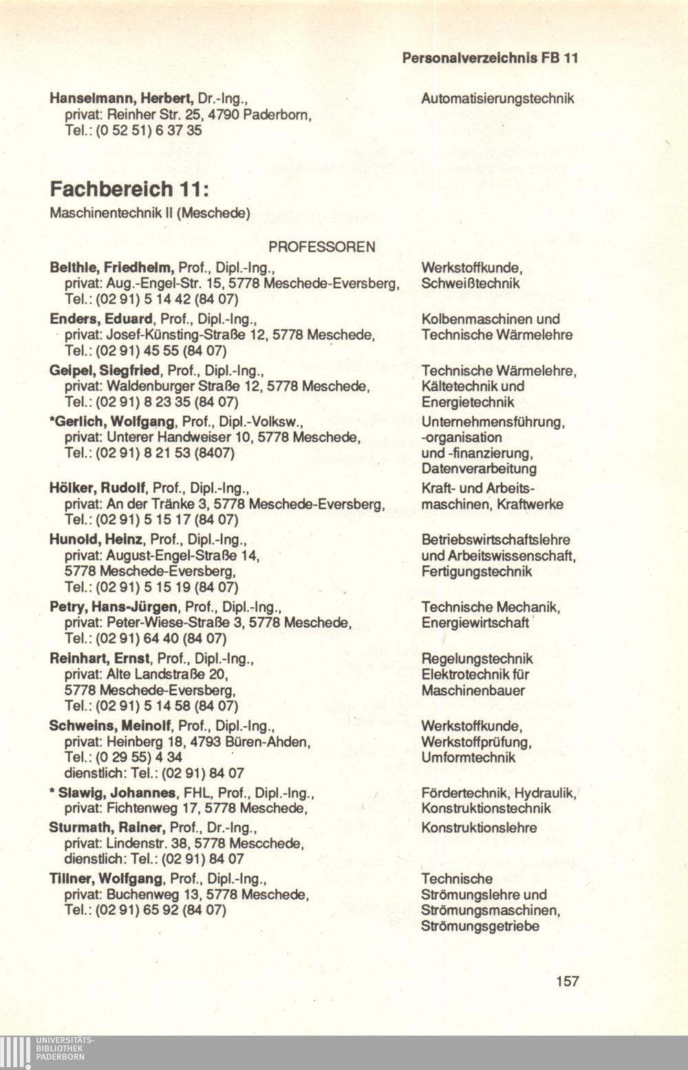 Personal- und Vorlesungsverzeichnis für die Universität Paderborn