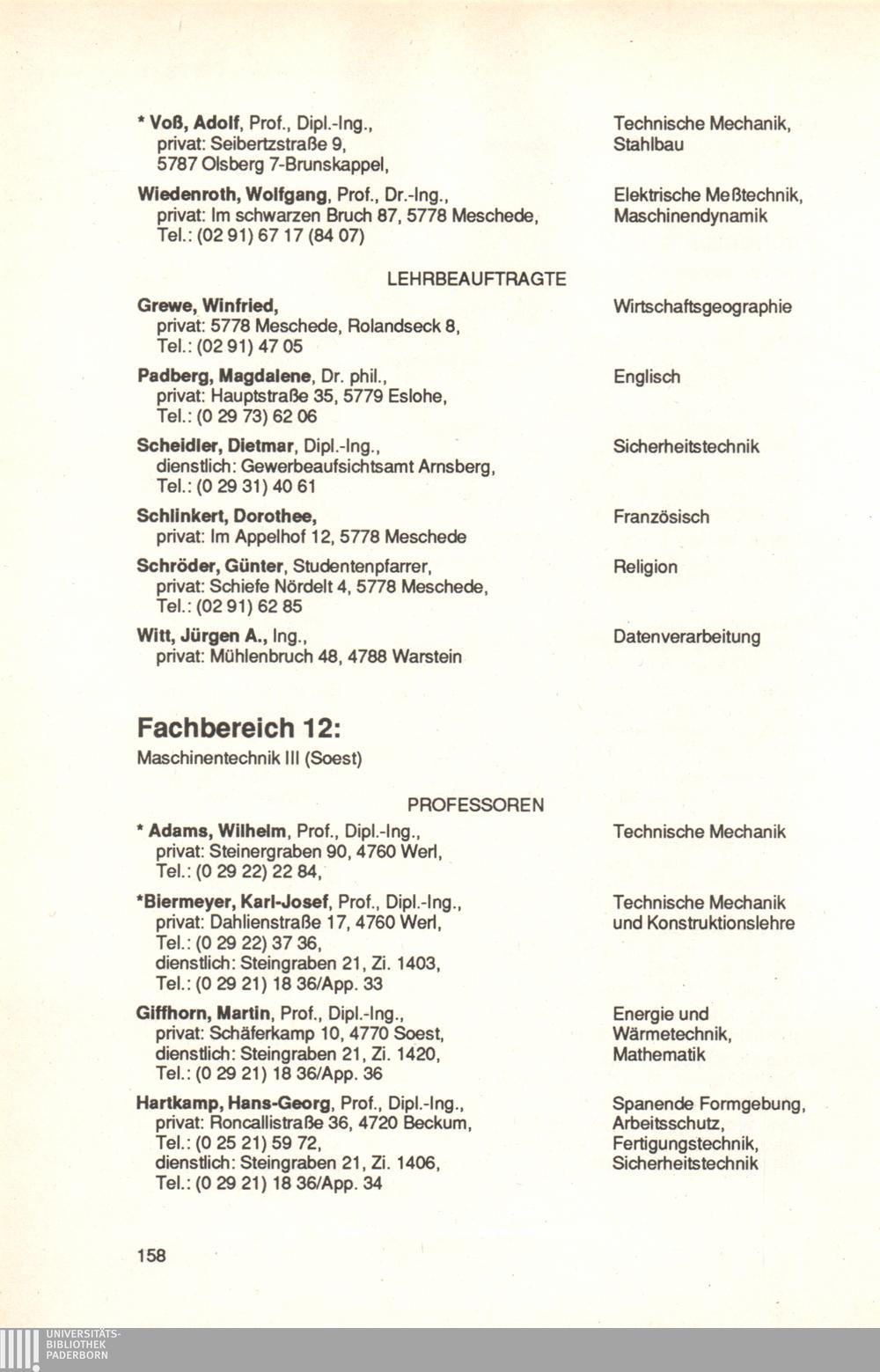 Personal- und Vorlesungsverzeichnis für die Universität Paderborn