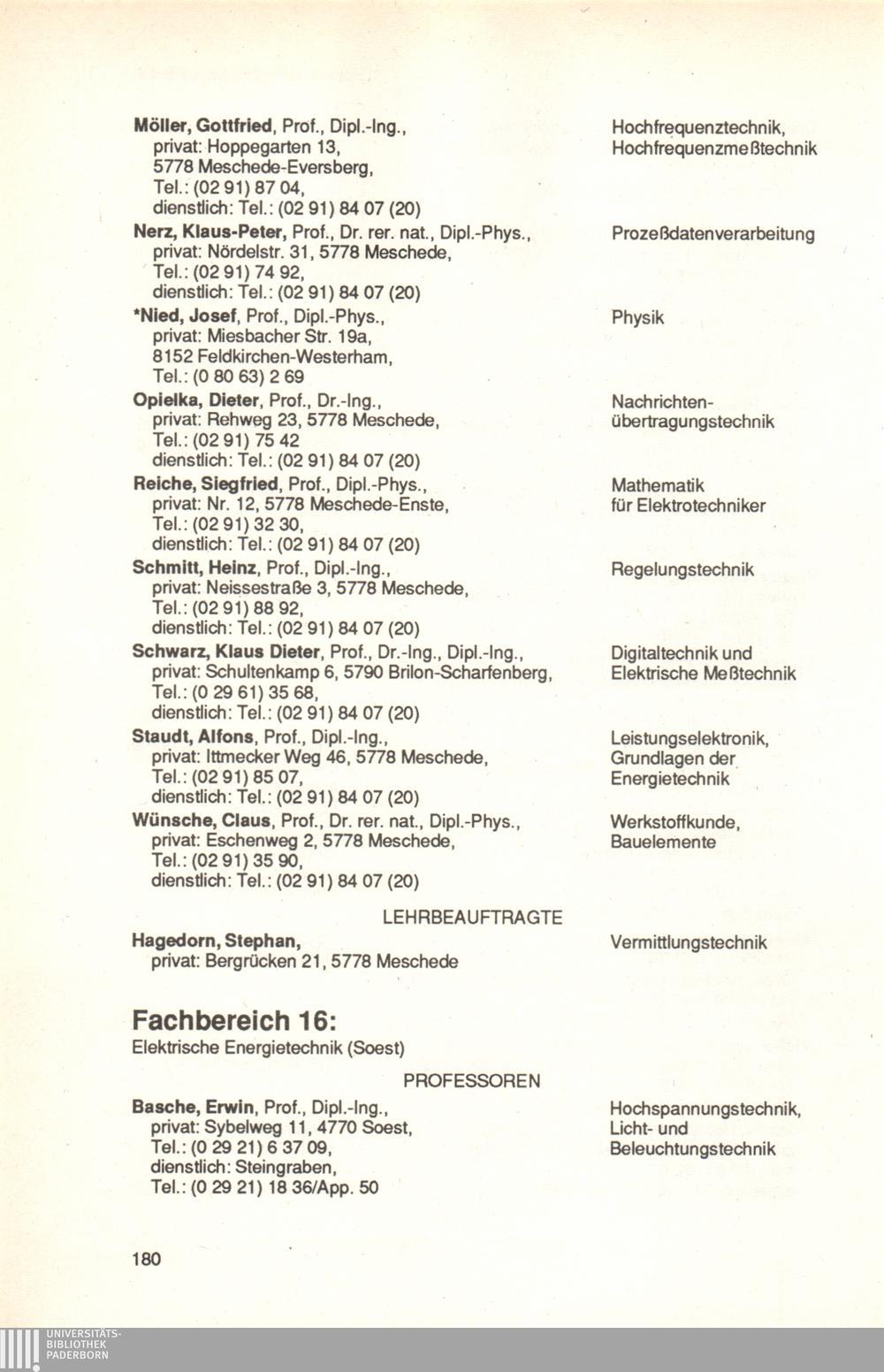 Personal- und Vorlesungsverzeichnis für die Universität Paderborn