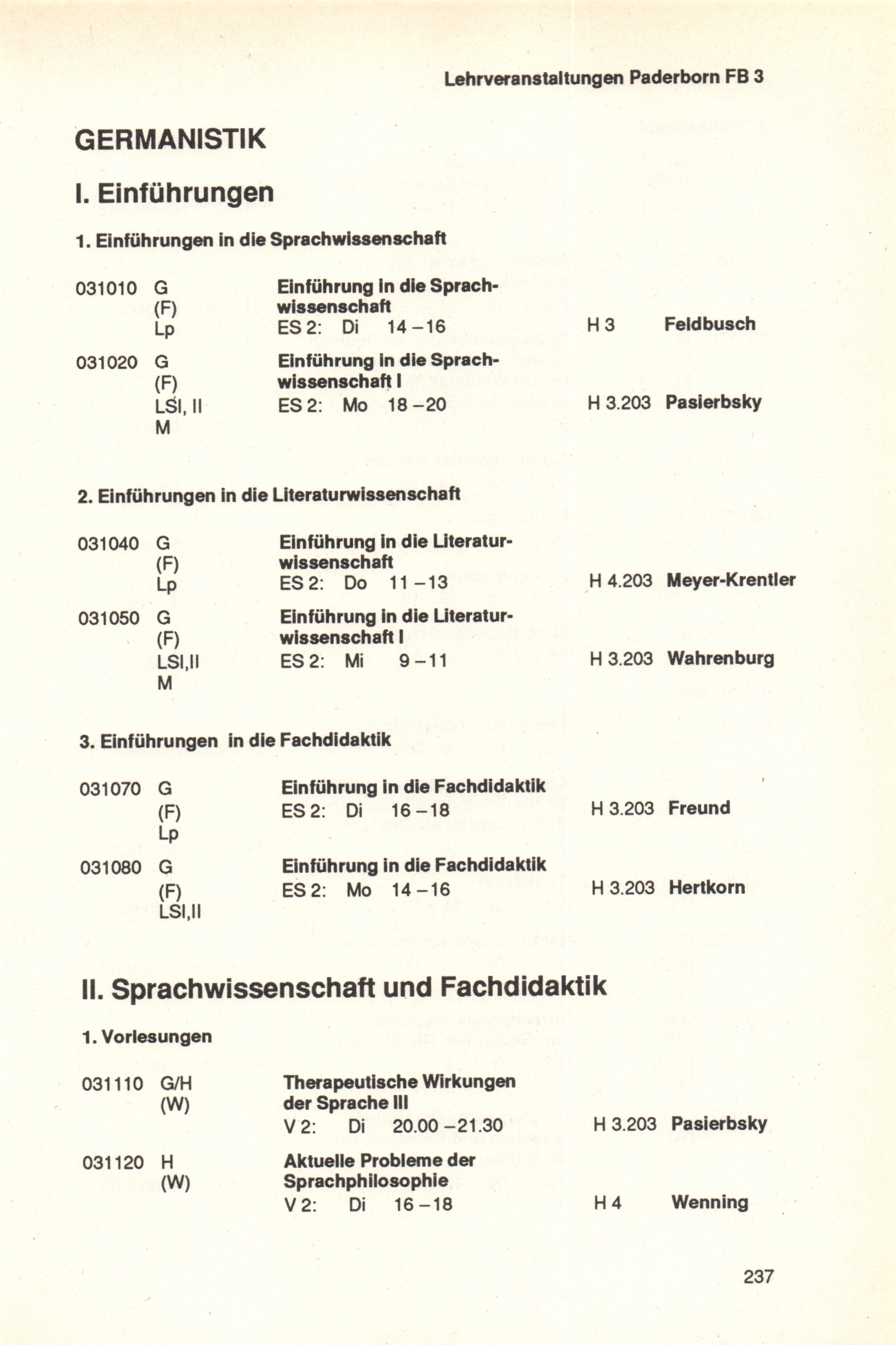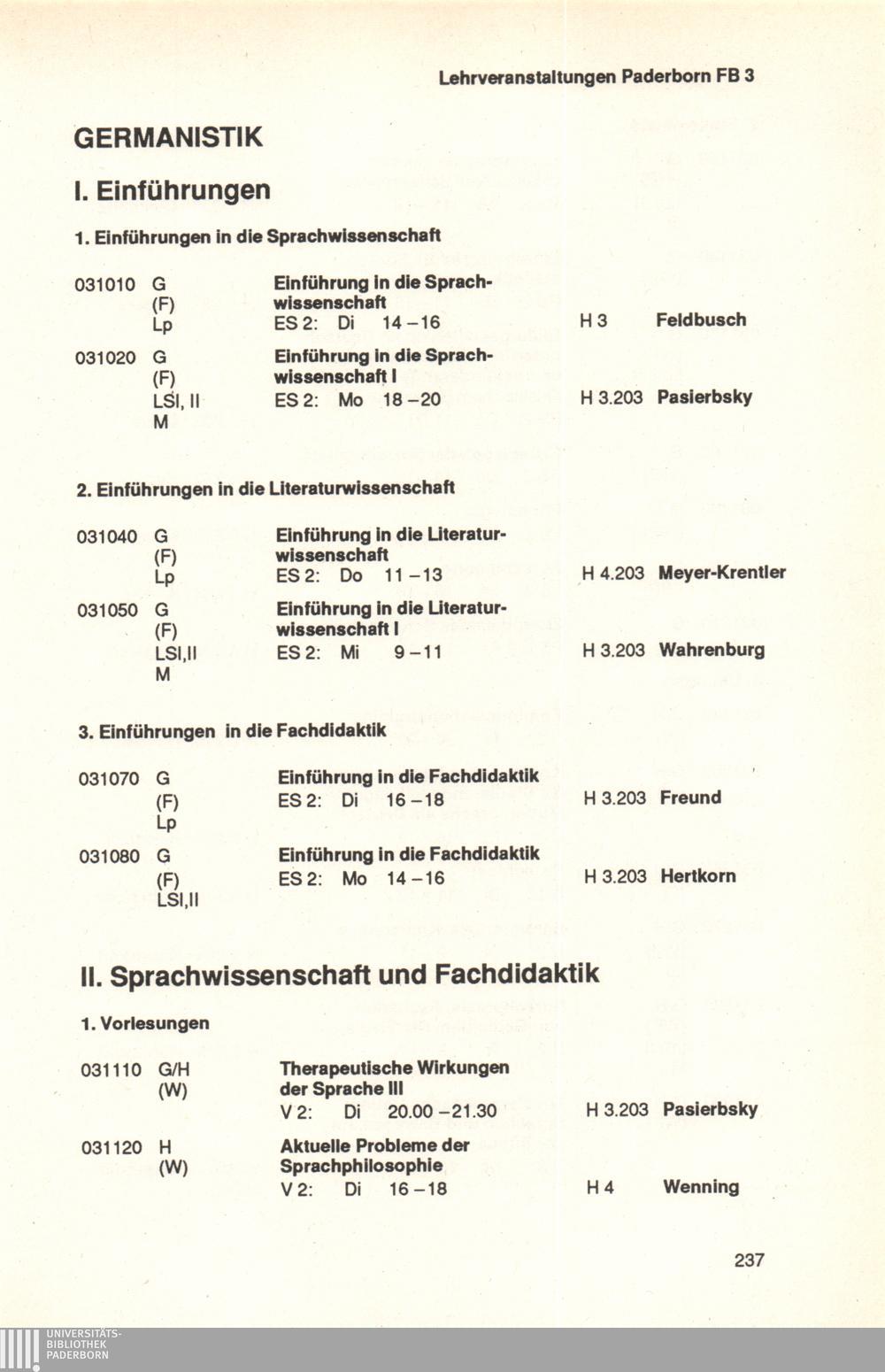 Personal- und Vorlesungsverzeichnis für die Universität Paderborn