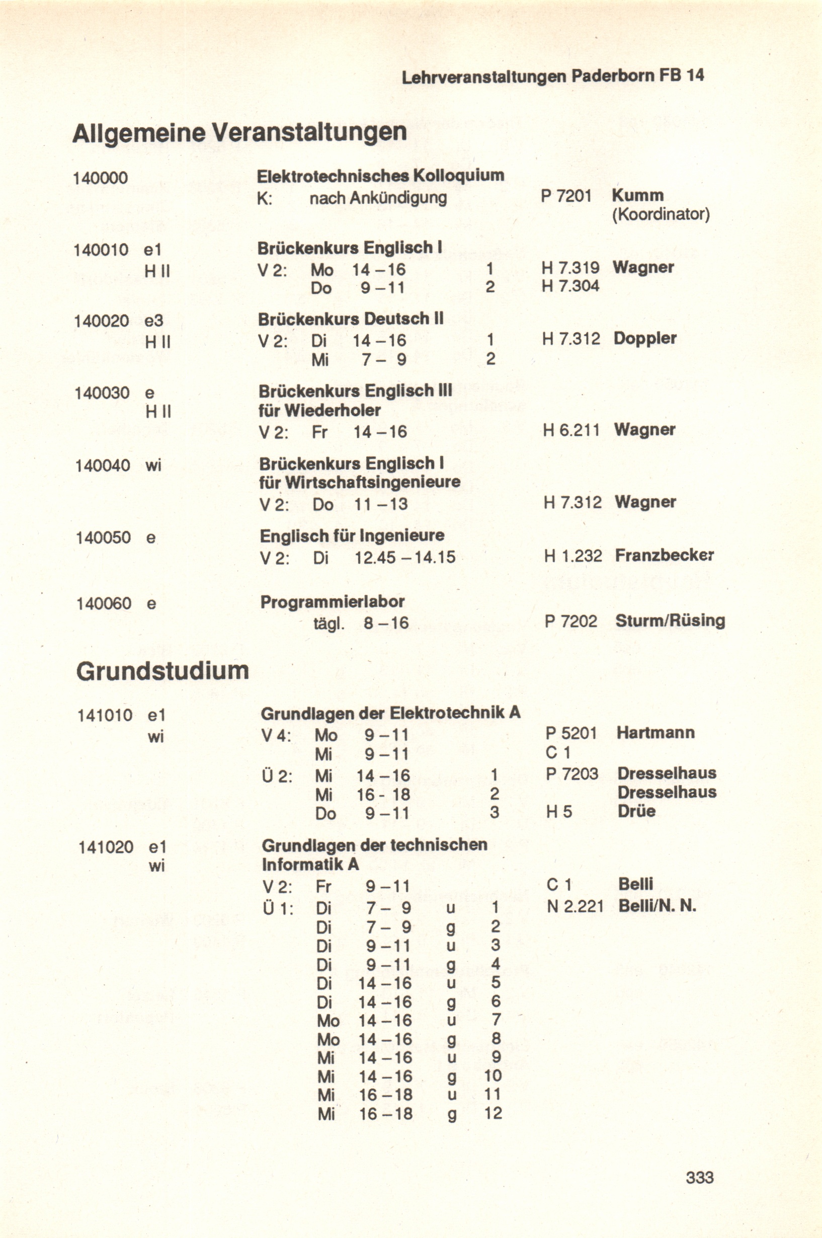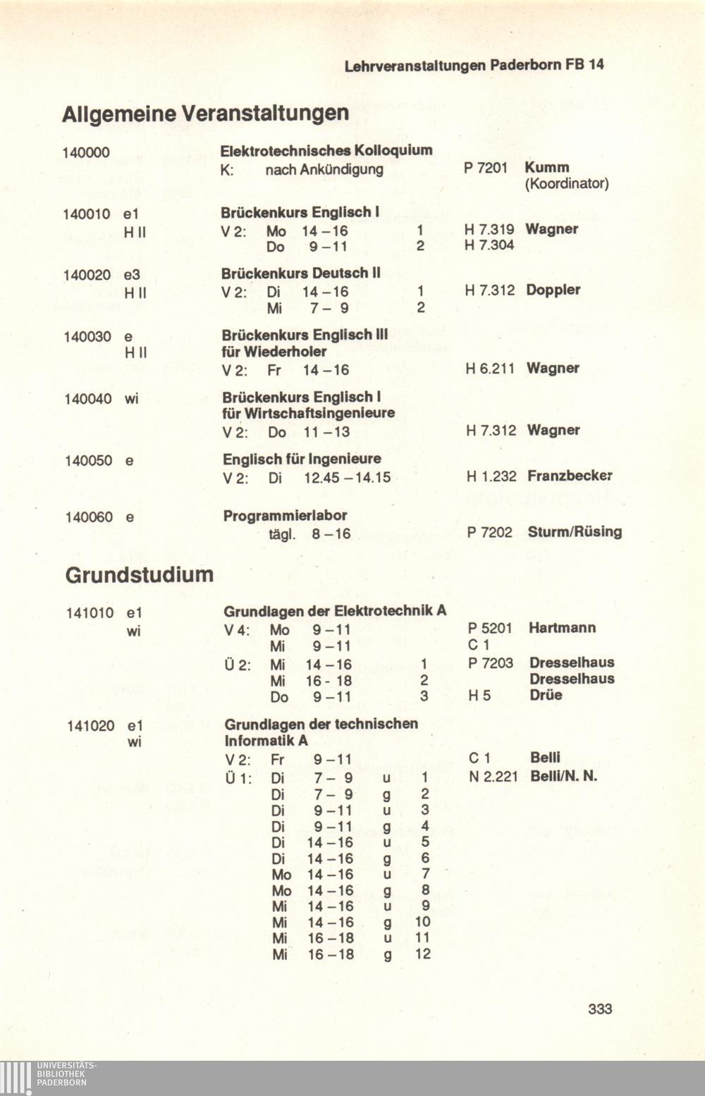 Personal- und Vorlesungsverzeichnis für die Universität Paderborn
