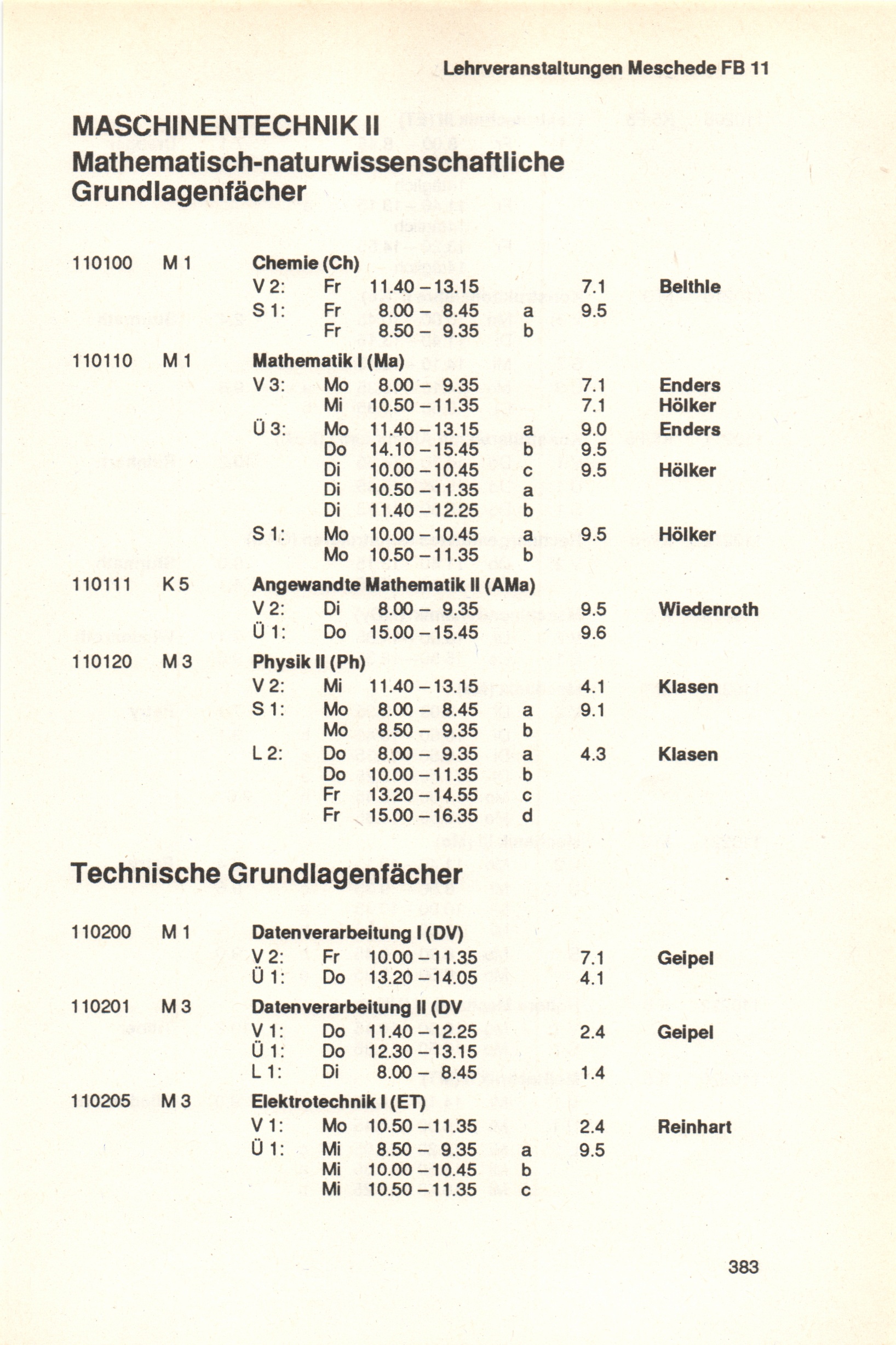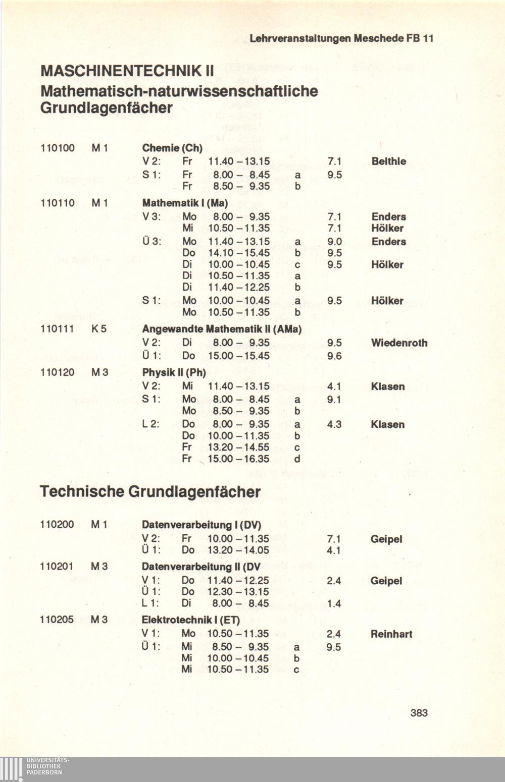 Fachbereich 11: Maschinentechnik II