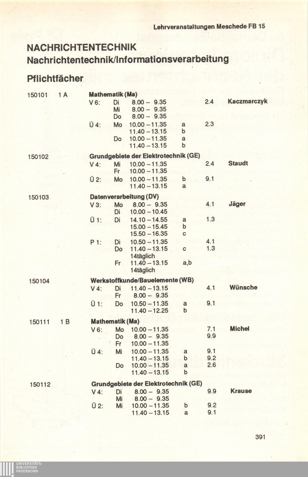 Personal- und Vorlesungsverzeichnis für die Universität Paderborn
