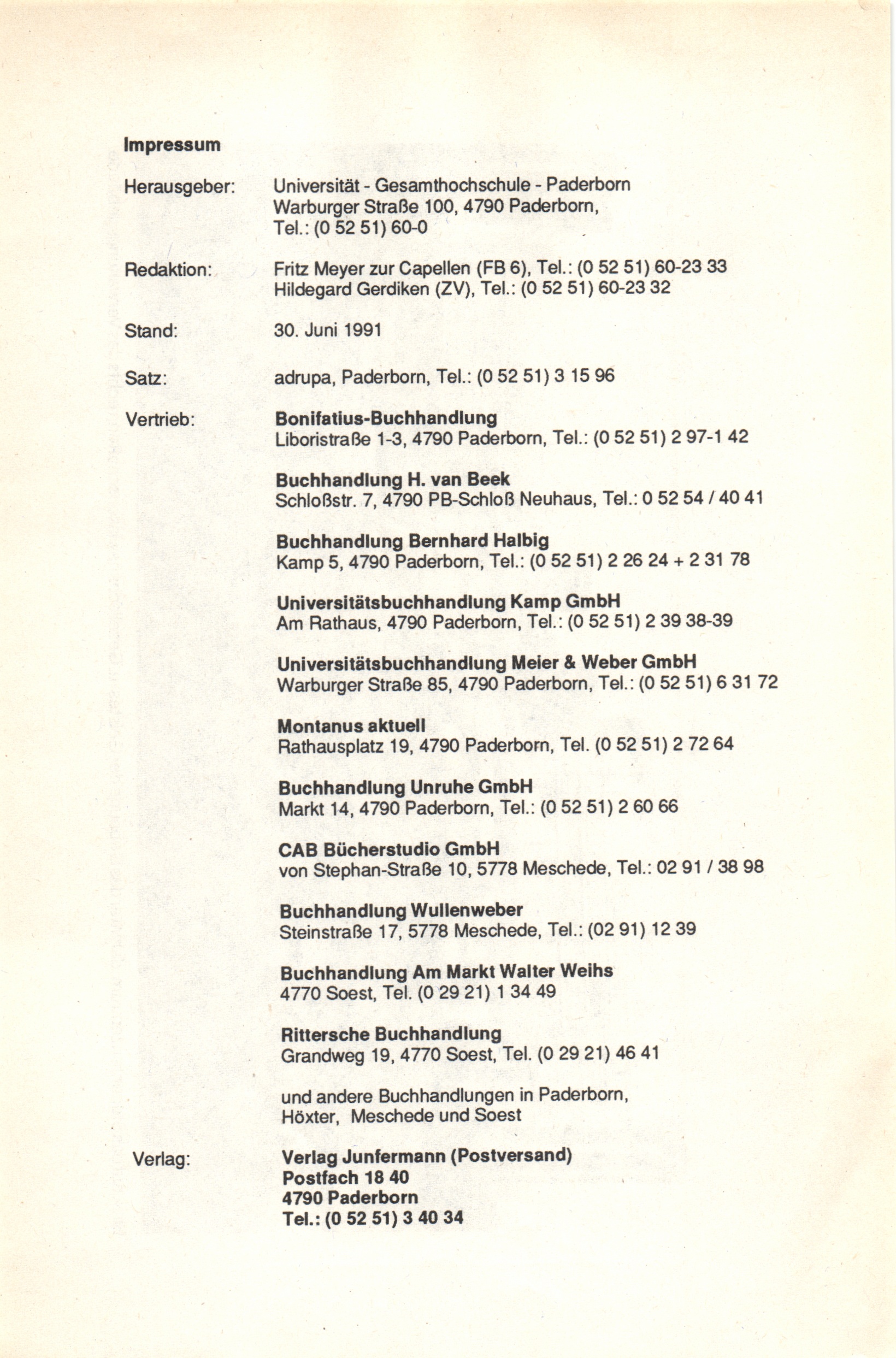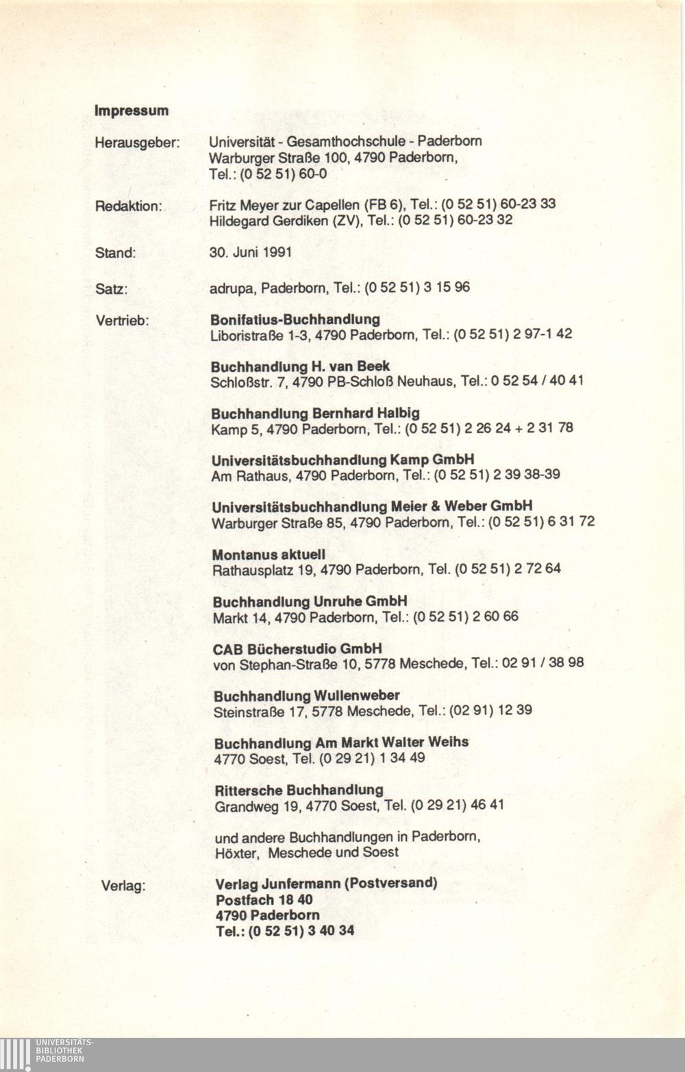 Personal- und Vorlesungsverzeichnis für die Universität Paderborn