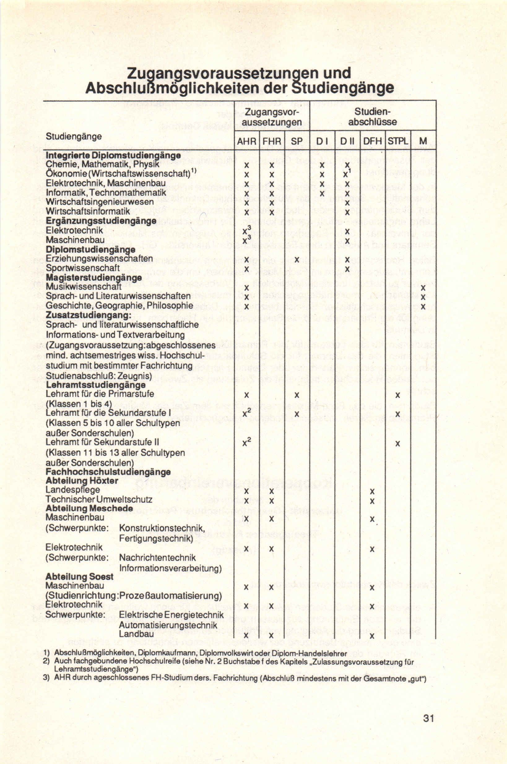 Zugangsvoraussetzungen und Abschlußmöglichkeiten