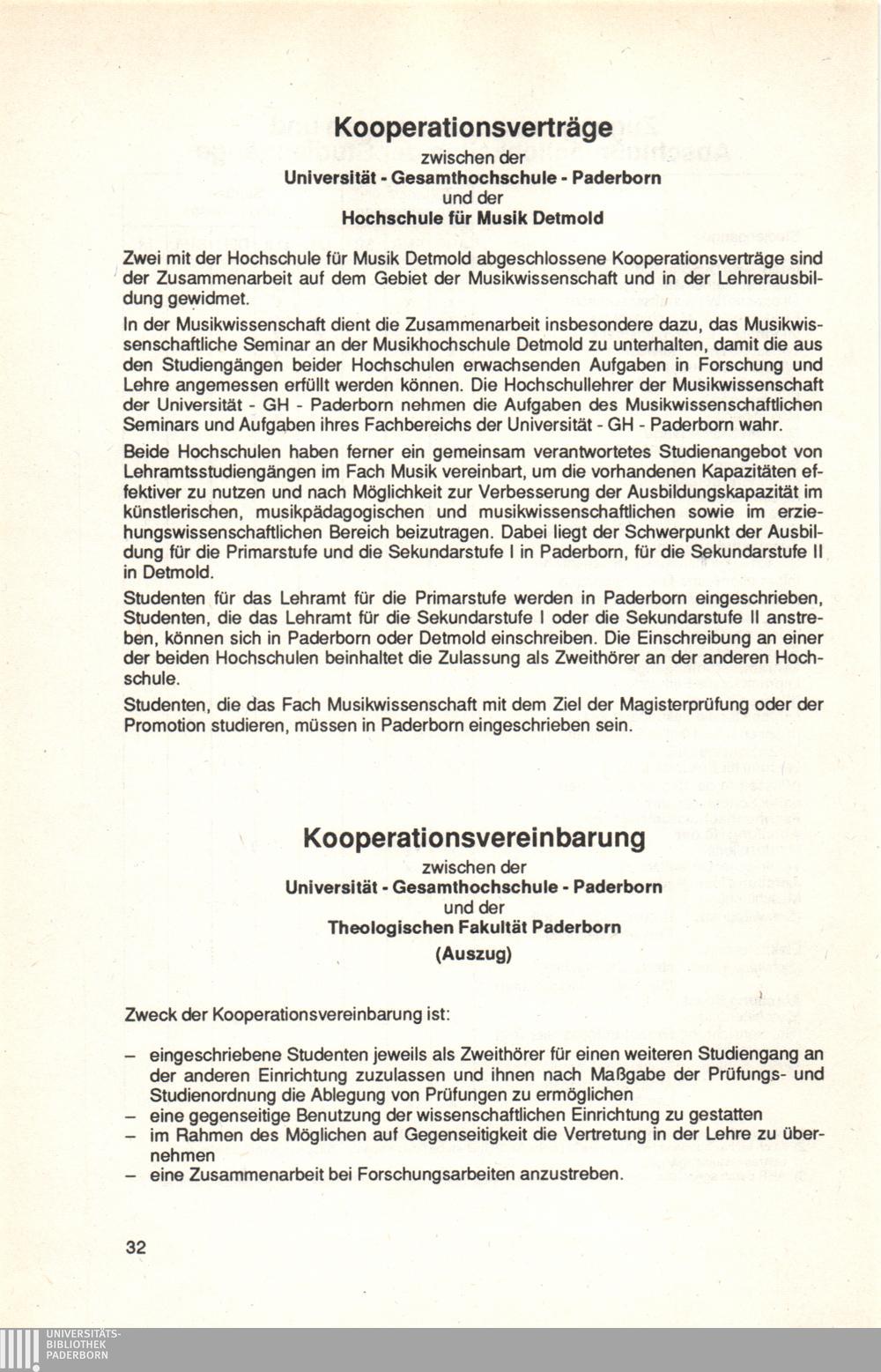 Kooperationsvereinbarung zwischen der Universität-Gesamthochschule Paderborn und[...]